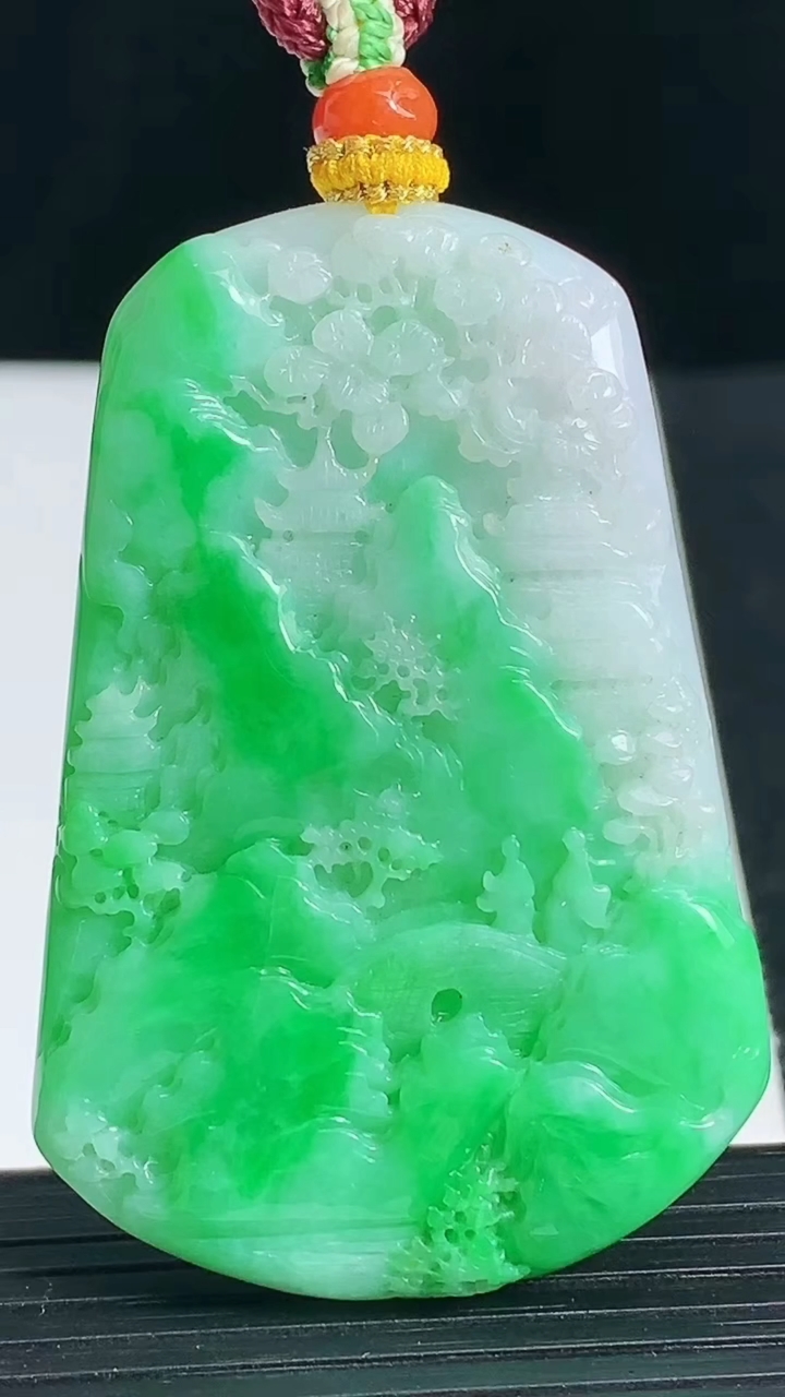 【翡翠名称】老坑种冰绿飘花大如意吊坠挂件 【翡翠尺寸】48/36.4/5mm 【翡翠描述】宝贝种老水