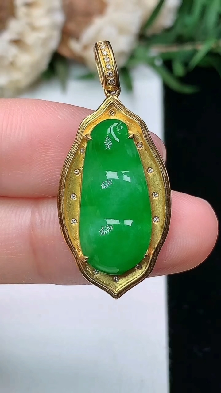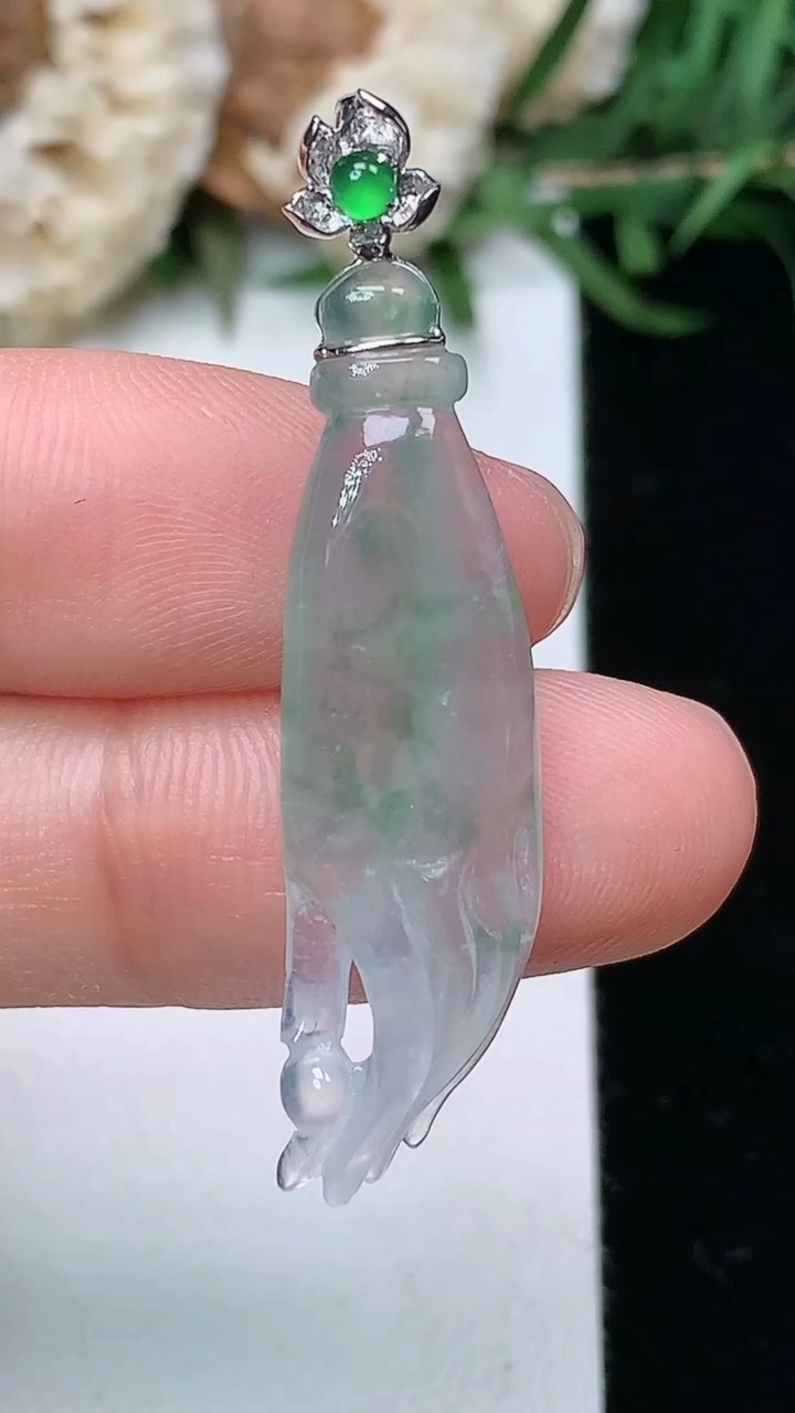 天然A货翡翠掌上明珠吊坠,尺寸33-9.6-5,重量:3.10g 3月23日