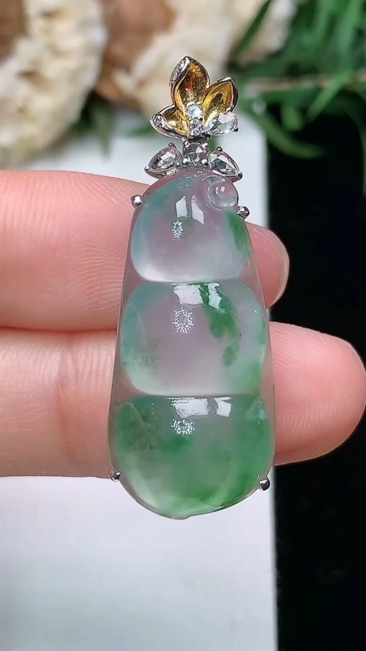 天然A货翡翠福豆吊坠,尺寸33.8-14.8-6.3,裸石19.7-8.9,重量:3.06g 3月2