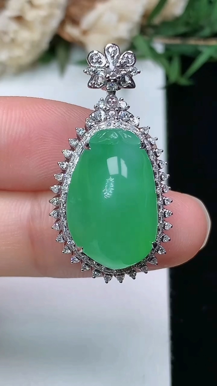 天然A货翡翠金枝玉叶 叶子吊坠,尺寸34.6-15.7-7.9 3月28日