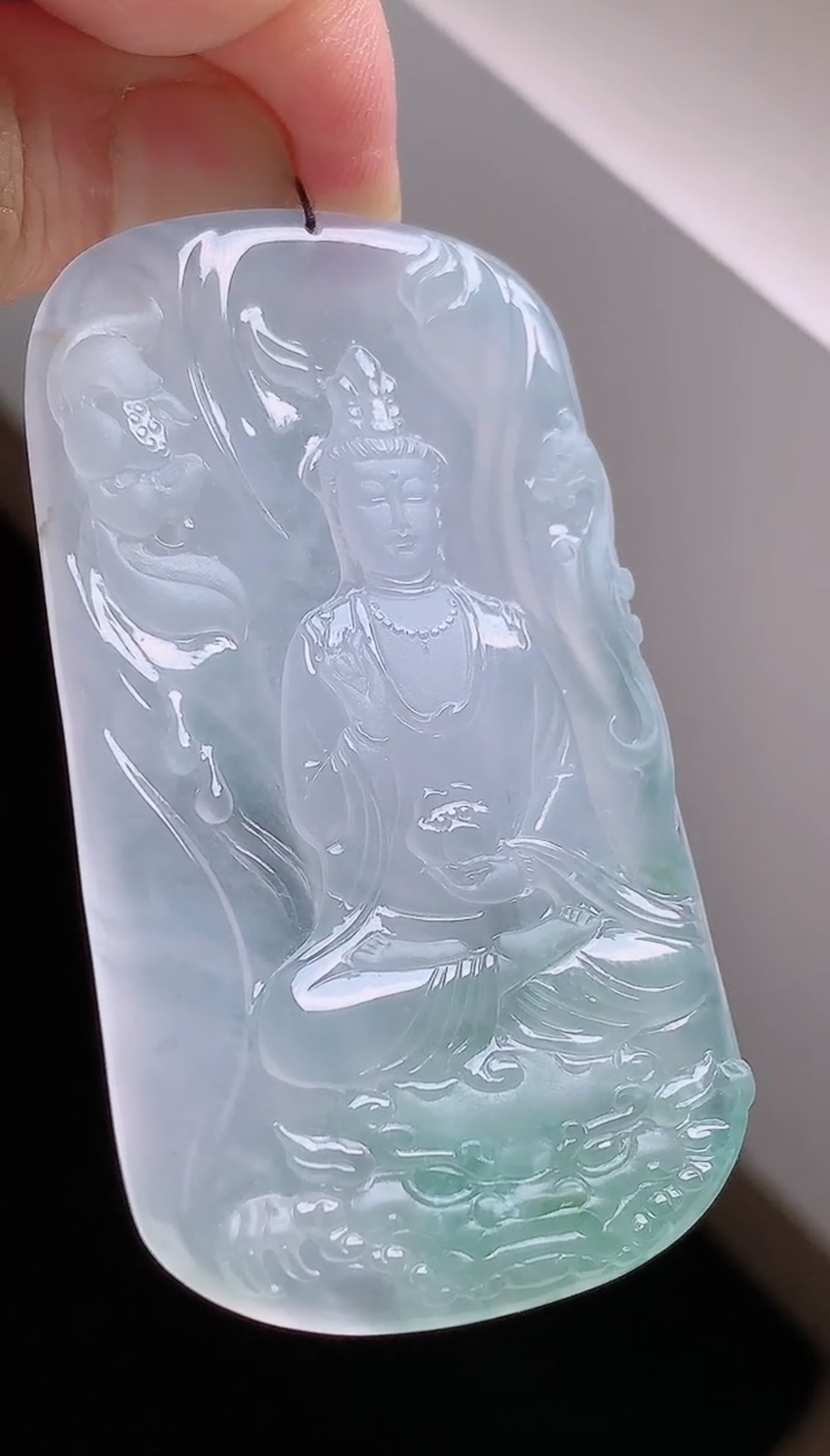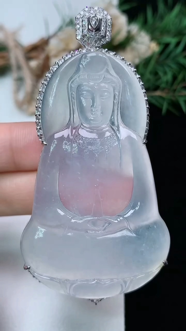 天然A货翡翠白冰素衣观音吊坠,尺寸75.5-60-37-12,重量:28.28g 3月28日