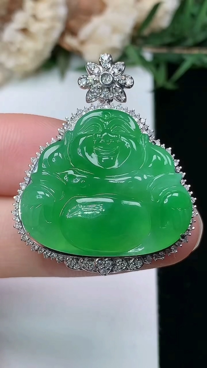 天然A货翡翠飘花佛公吊坠,尺寸25.9-28.3-6,重量:7.04g 3月28日