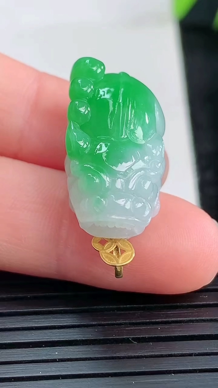 天然A货翡翠年年有余吊坠,尺寸33.5-11.6-6.6,重量:4.89g 3月28日