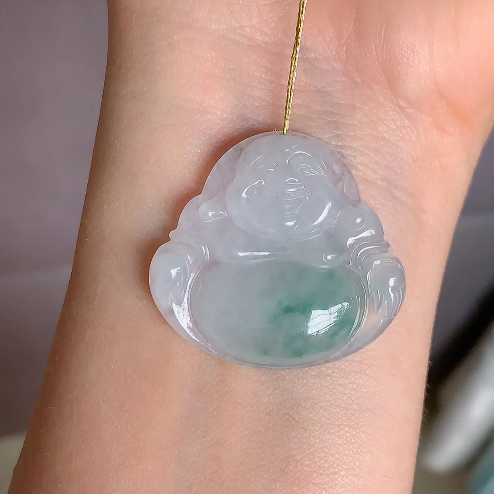 实拍A货翡翠43/22.5/12.8老坑冰胶果冻天空蓝财神爷吊坠翡翠挂件