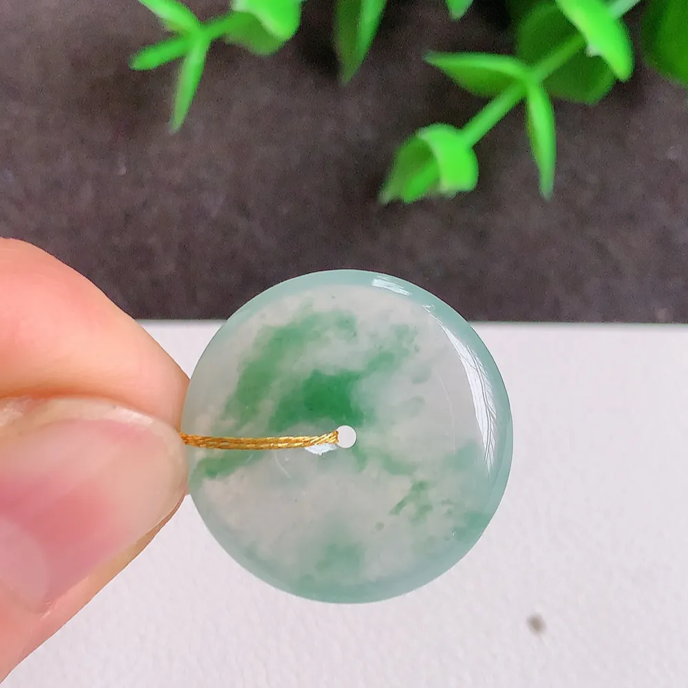 实拍A货翡翠29.2/3.9老坑冰胶水灵冰晴平安扣吊坠翡翠玉环挂件