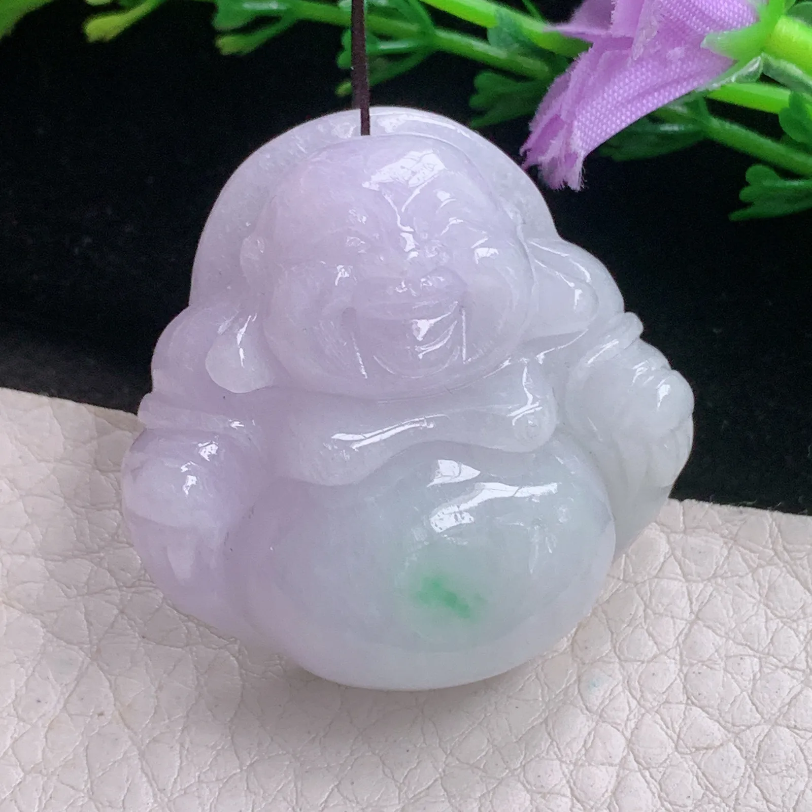 zen自然光37.5*38.7*12.3天然缅甸翡翠A货春带彩饱满佛公 开心佛玉吊坠