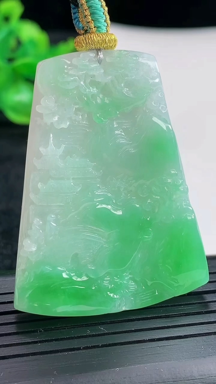rp实拍59.3*35*6天然缅甸翡翠清新普贤菩萨 玉观音玉吊坠 玉挂件
