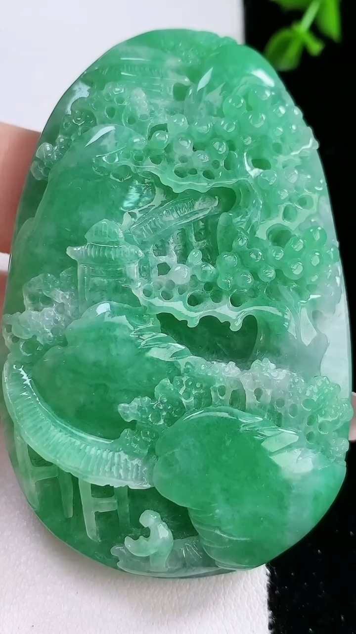 天然A货翡翠山水牌吊坠,尺寸69-44-13,重:79.81g 4月18日