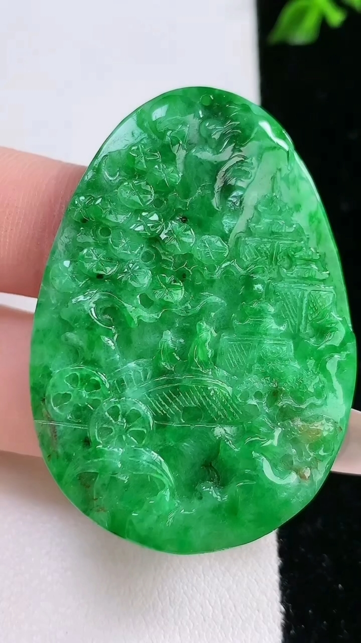 天然A货翡翠山水牌吊坠,尺寸49-34-6,重:19.31g 4月18日