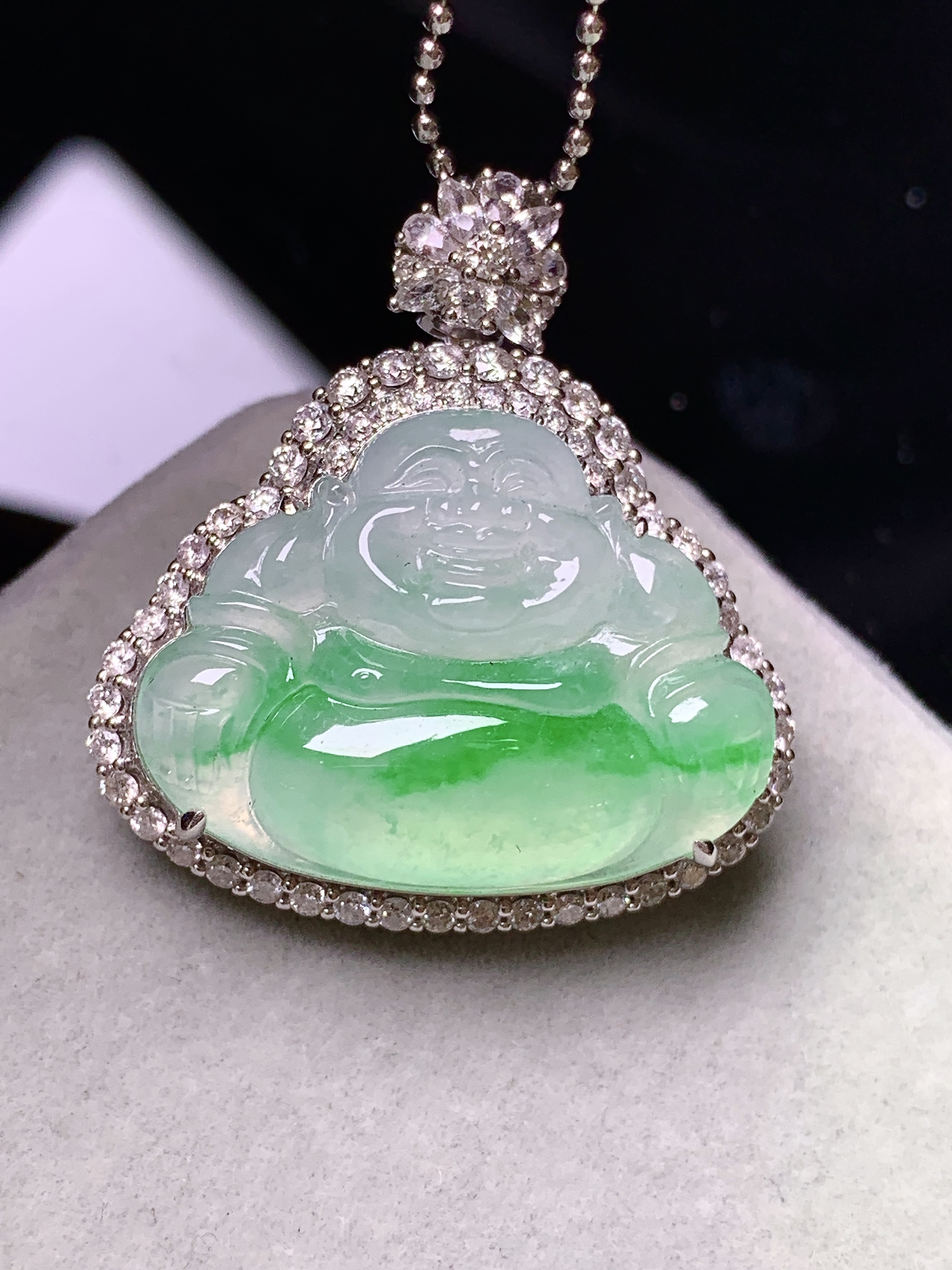 天然A货翡翠佛公吊坠尺寸34-26.5-10,裸石20-21重量:7.86g 4月17日