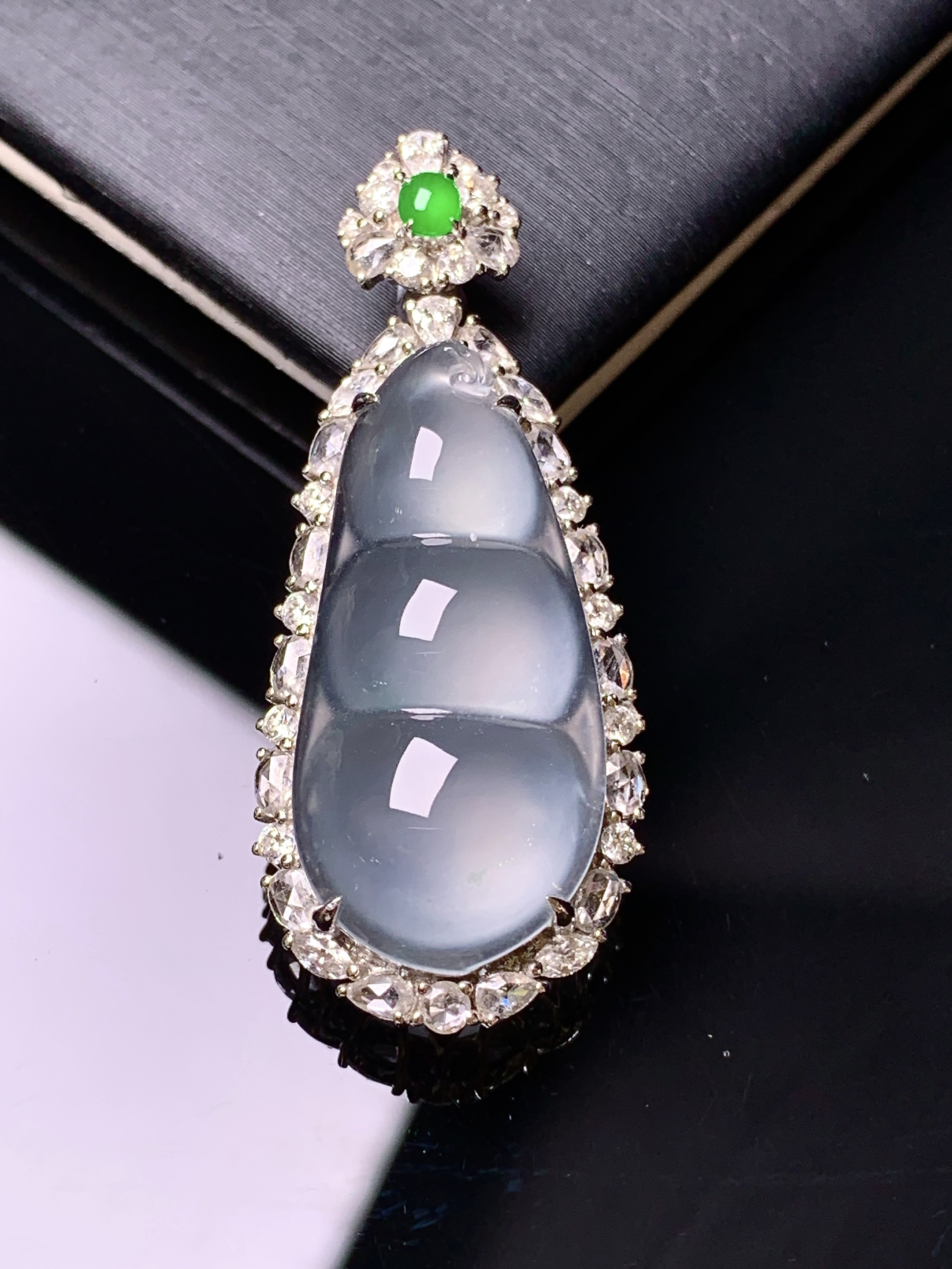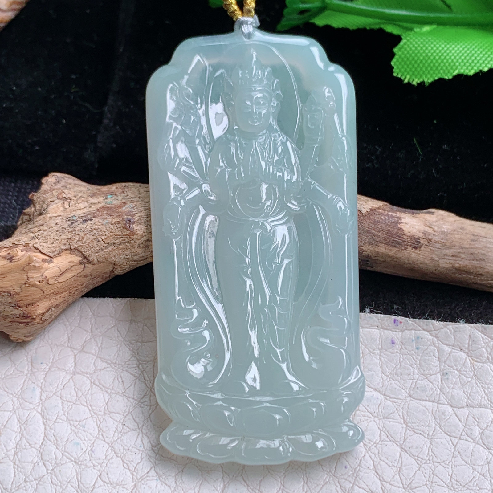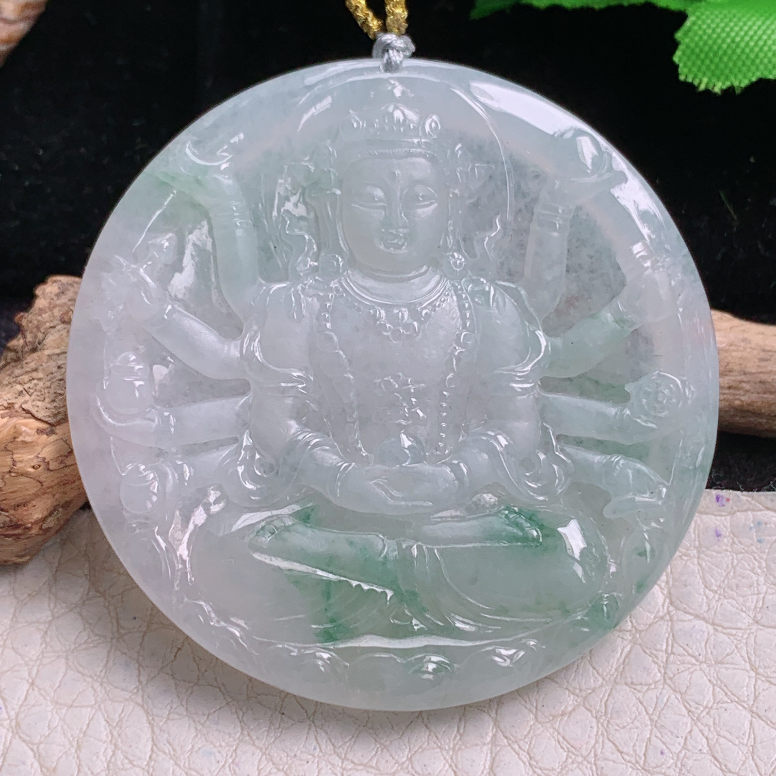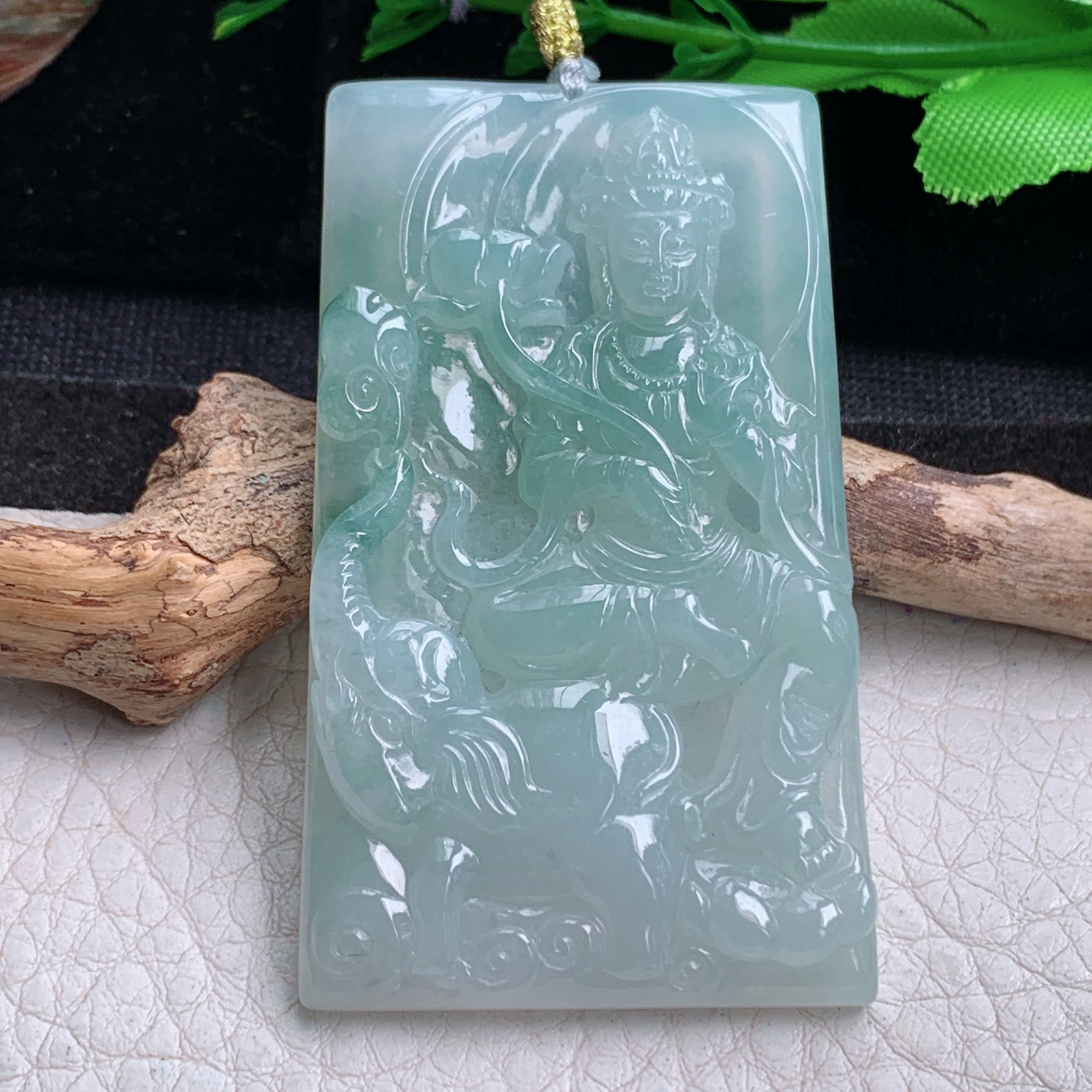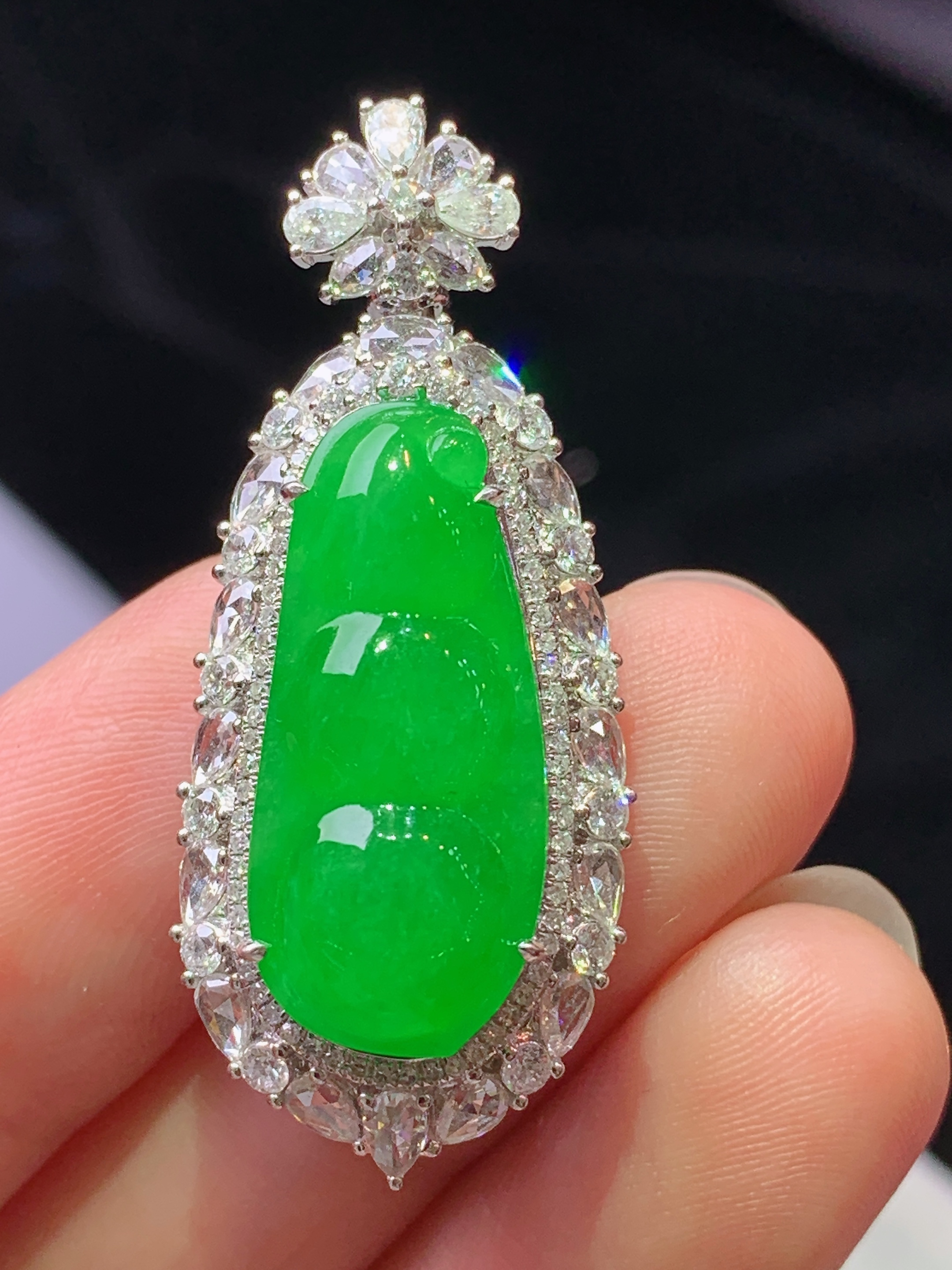 A货天然翡翠冰糯种飘绿荷花吊坠重量11.10 4月21日