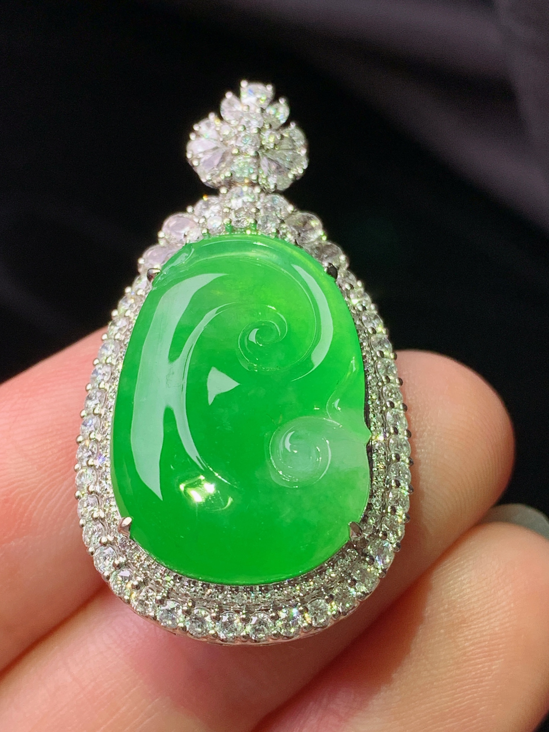 天然A货翡翠如意吊坠,尺寸50-28-5.5重量:15.70g 4月21日