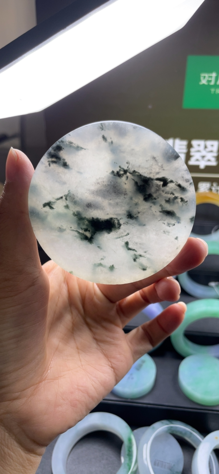 天然A货翡翠冰种飘花平安扣吊坠尺寸24.5-4.3重量:5.87g 3月14日
