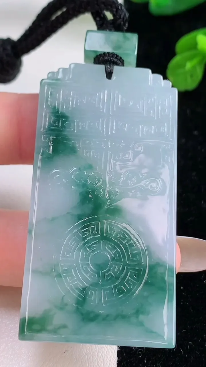 天然A货翡翠冰种飘花仿古无事牌吊坠,尺寸56-28.7-5.8,重量:36.16g 11月18日