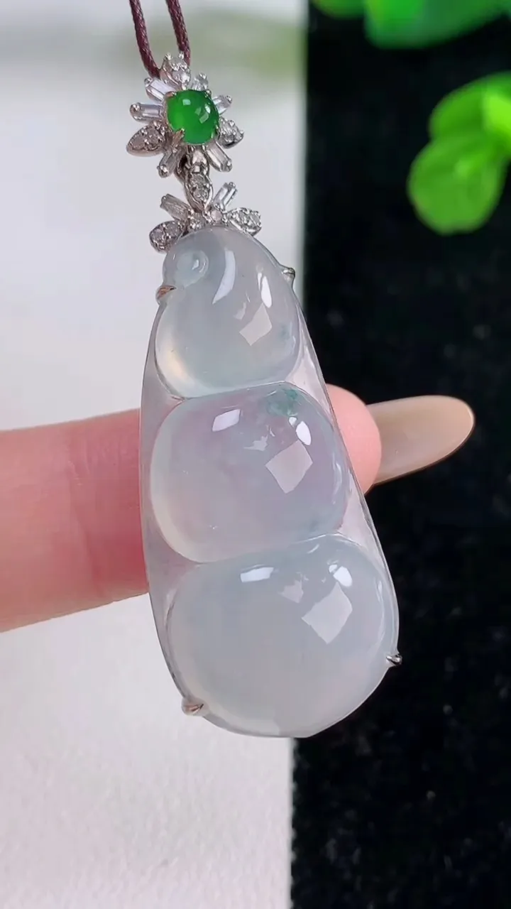 天然A货翡翠种飘花福豆吊坠,尺寸45.2-34-16-8.4,重量:6.60g 11月18日