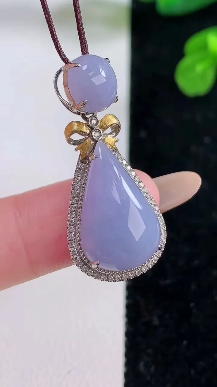 天然A货翡翠18K金紫罗兰水滴吊坠,尺寸32.6-14.7-8.4,裸石18-11.3重量:4.23