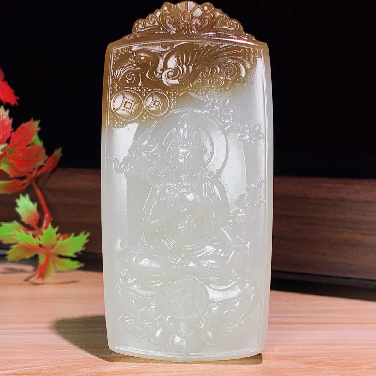 冰种观音菩萨吊坠 玉质细腻 色泽清新艳丽 整体尺寸45.2*30.5*5.2