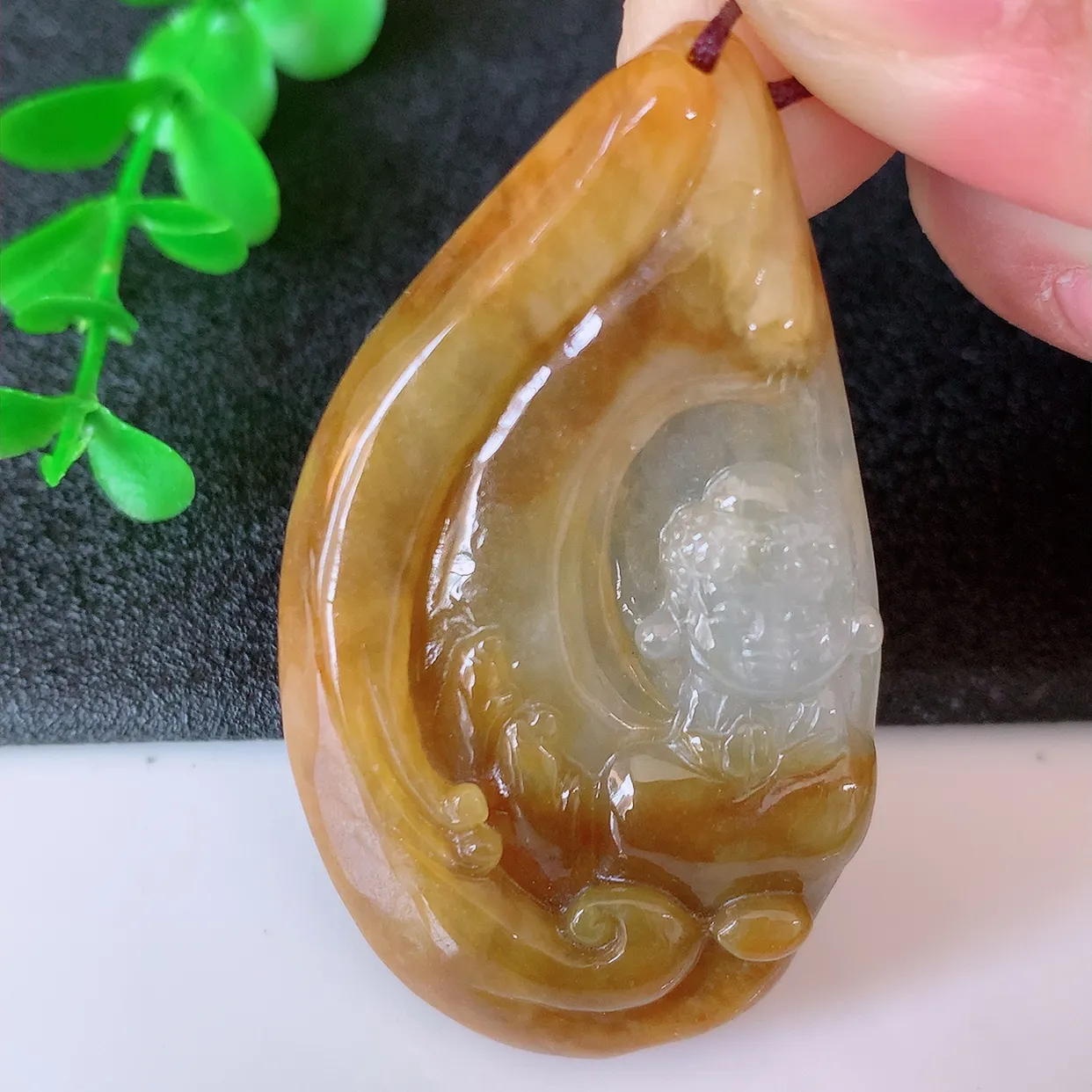 冰种福豆吊坠,玉质细腻,荧光感超 强,饱满圆润,尽显优雅气质,18k 金豪华镶嵌