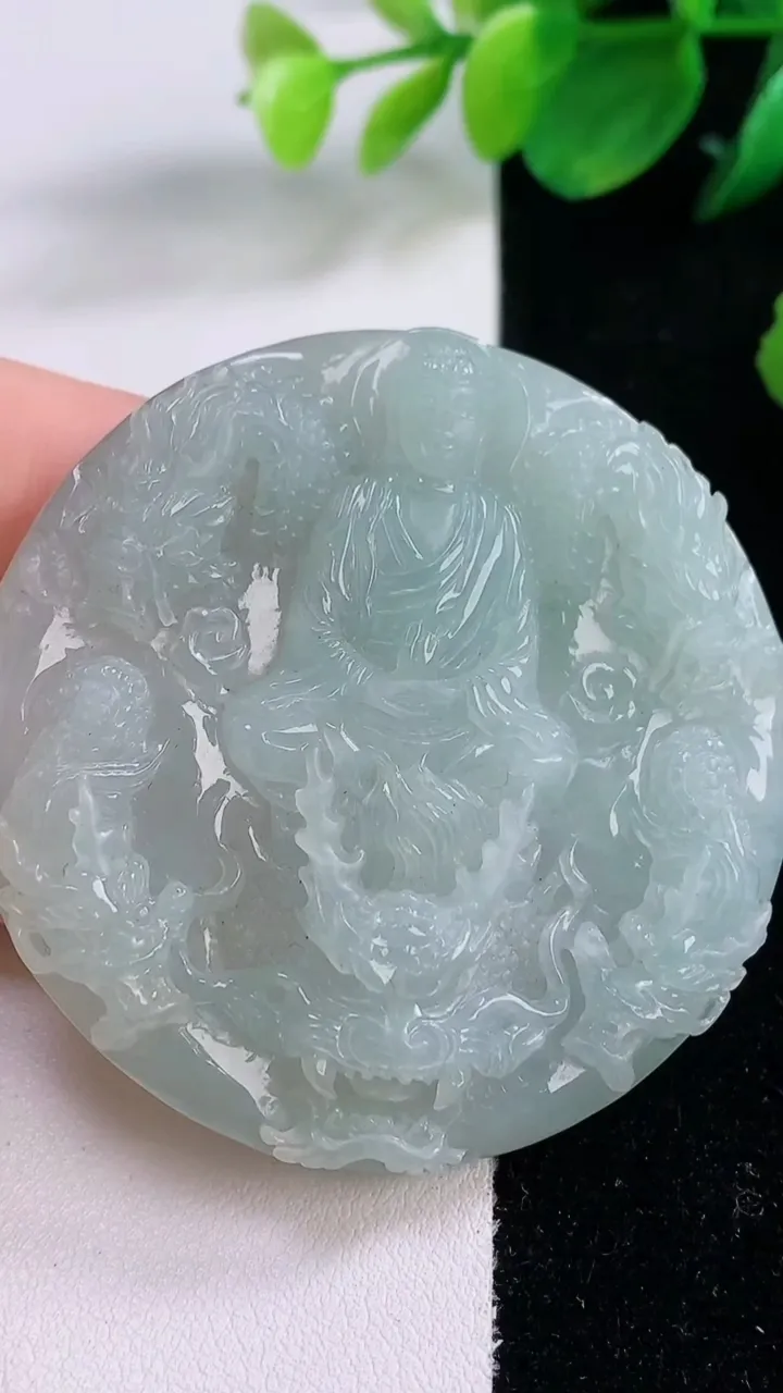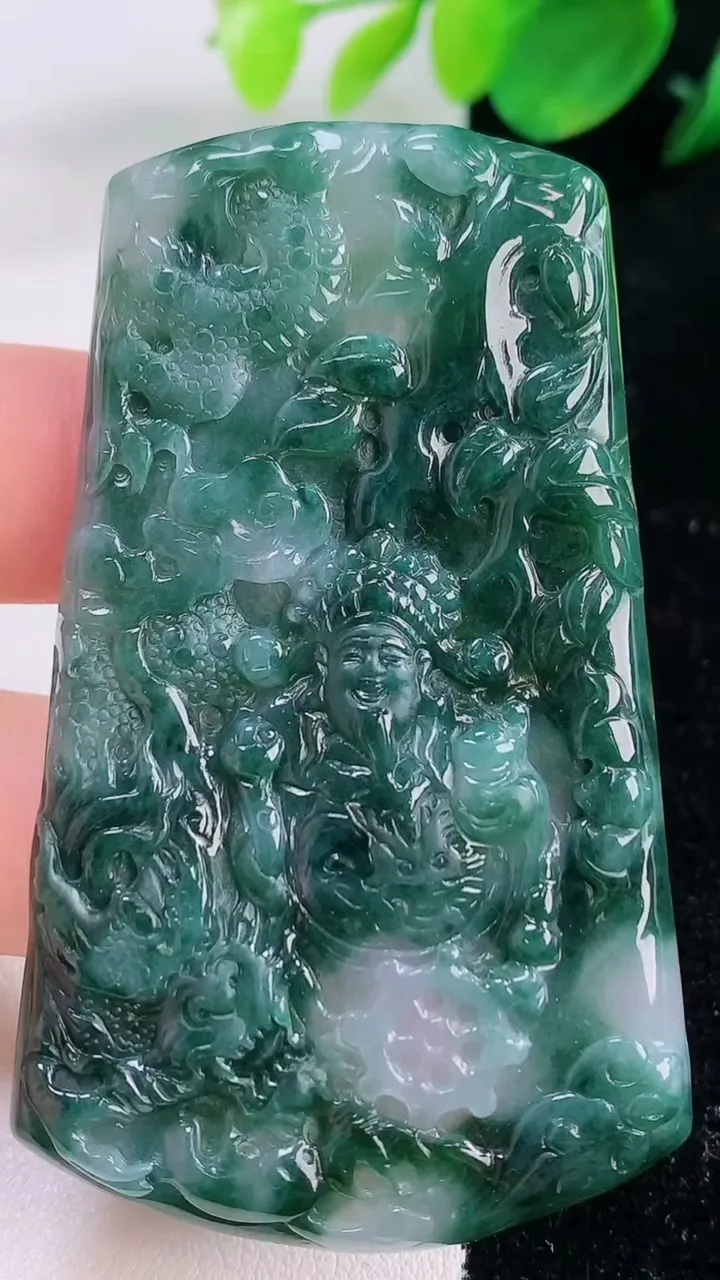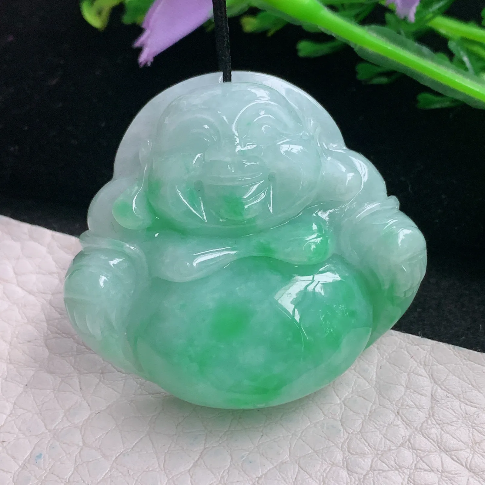 zen自然光39.2*43.8*12天然缅甸翡翠辣绿佛公 开心佛玉吊坠 玉挂件