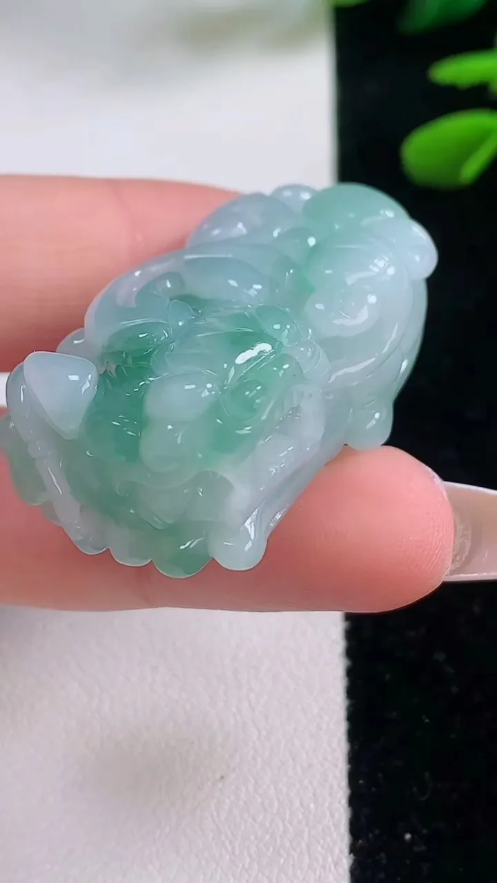 天然A货翡翠貔貅吊坠,尺寸38.4-19.3-12,重量:19.39g 12月2日