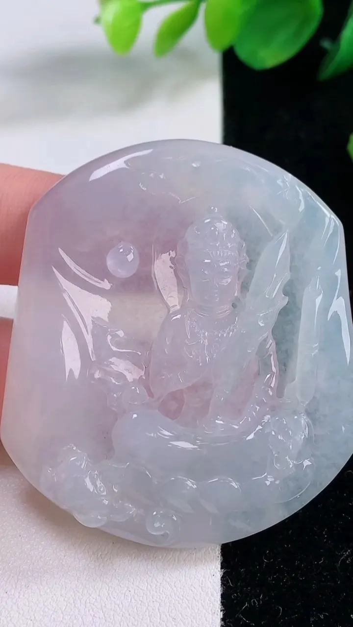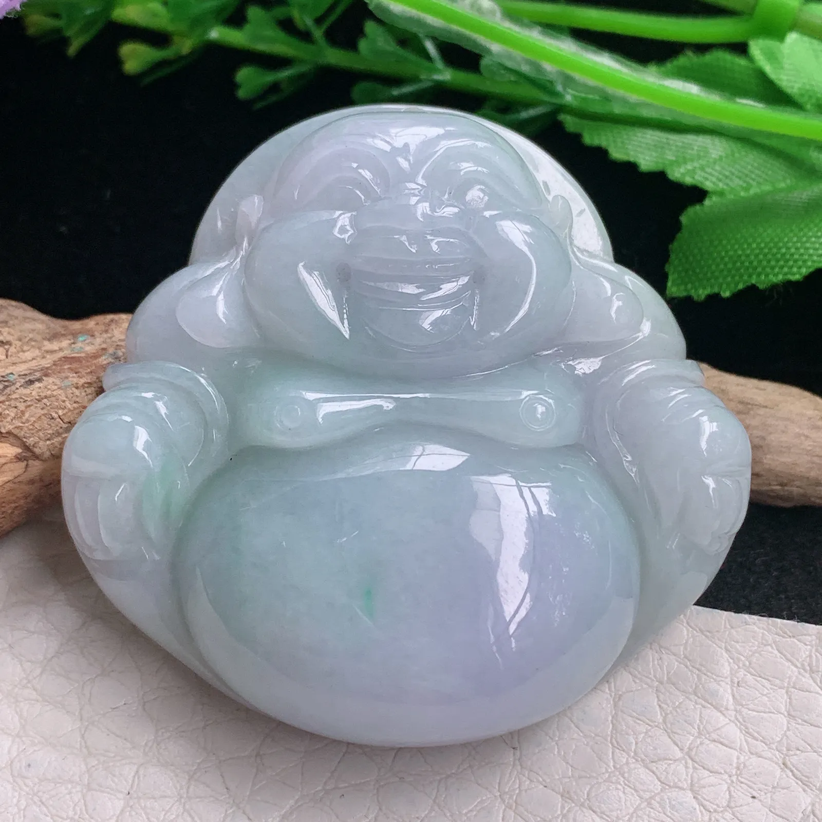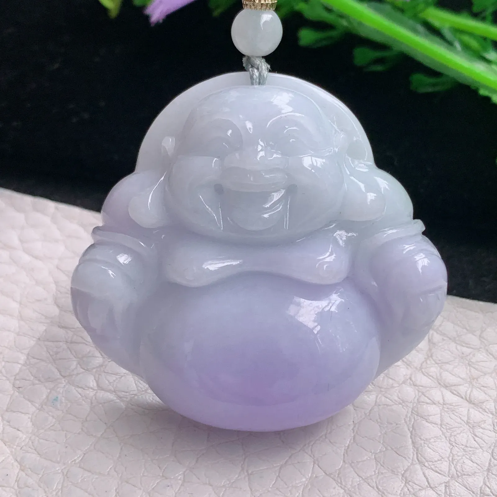 zen自然光40.3*43.5*12天然缅甸翡翠紫罗兰饱满佛公 开心佛玉吊坠 玉挂件