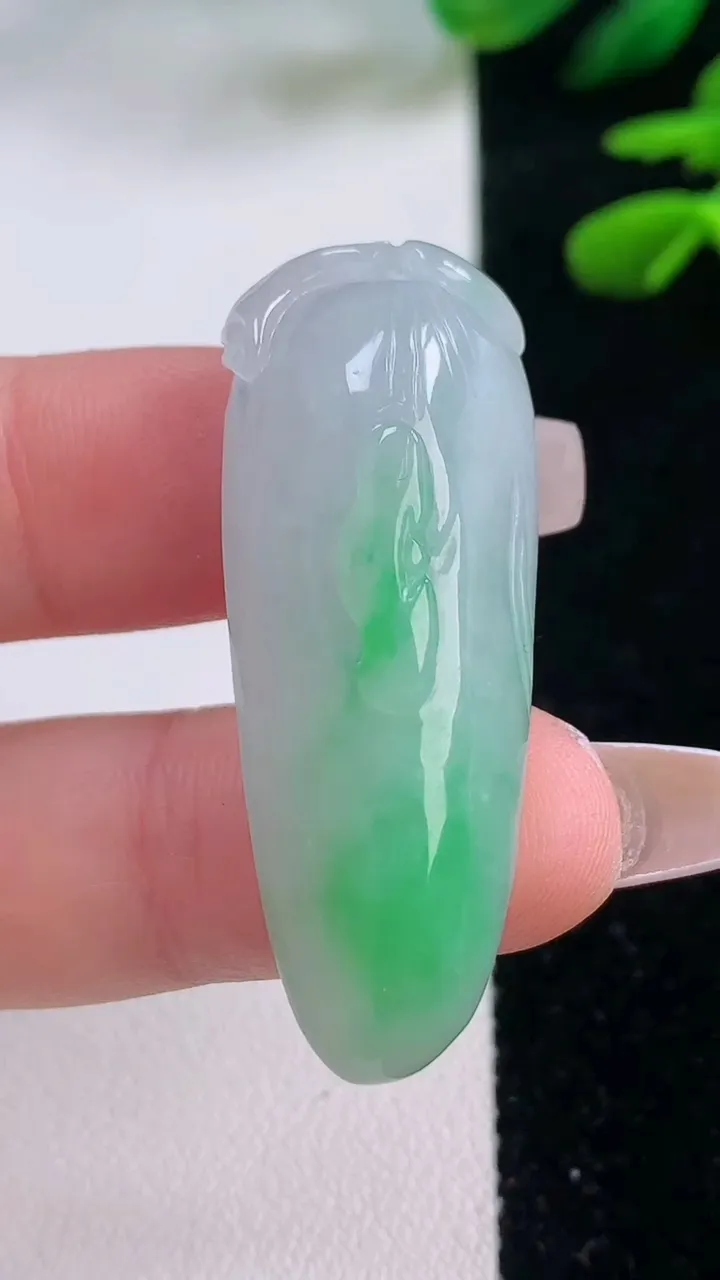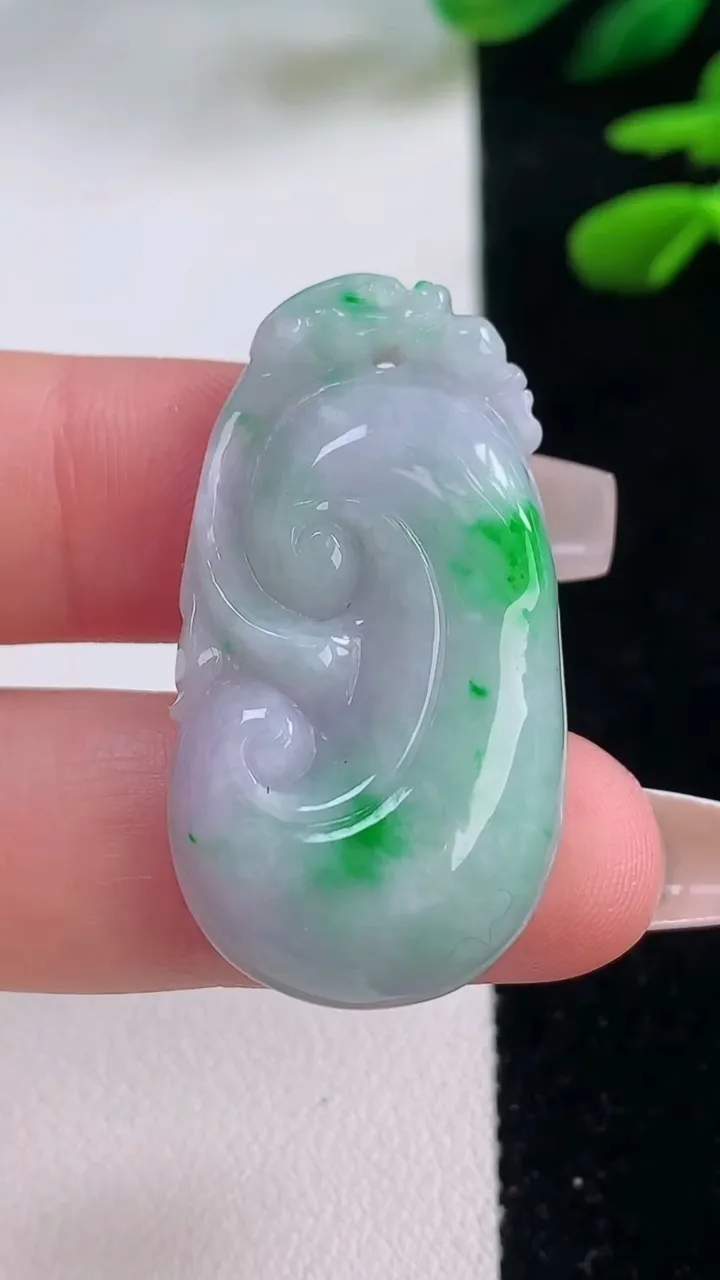 天然A货翡翠如意吊坠,尺寸37.2-19.8-5.9,重量:8.78g 12月2日