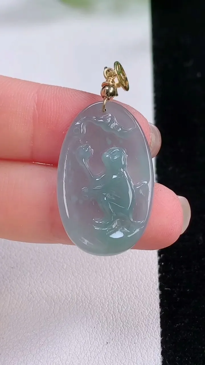 天然A货翡翠观音菩萨吊坠,尺寸45.7-10.3-3.2,重量:3.51g 12月3日