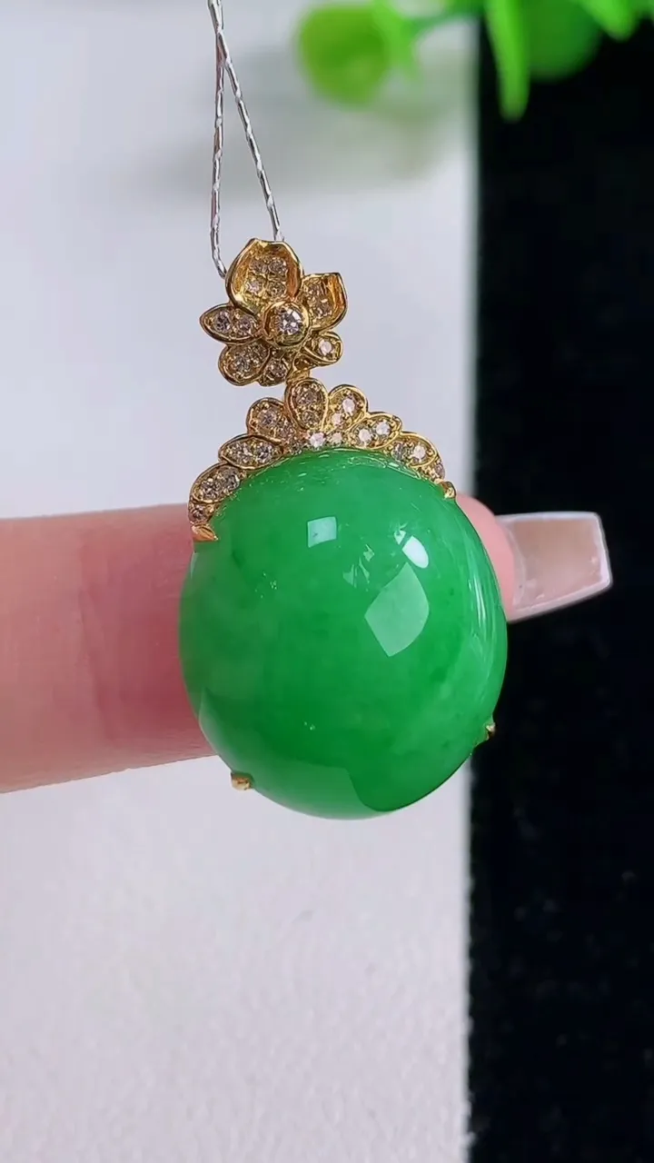 天然A货翡翠蛋面吊坠,尺寸27.5-17-15.7-9.5,重量:5.44g 12月5日