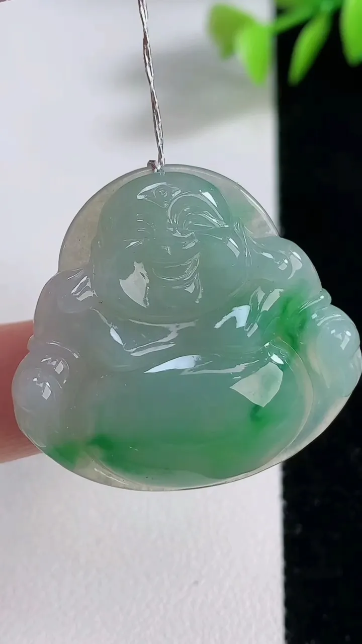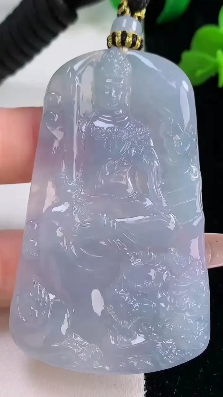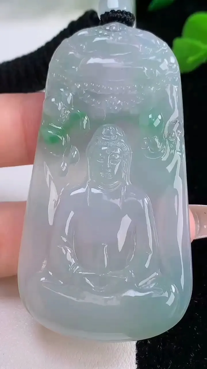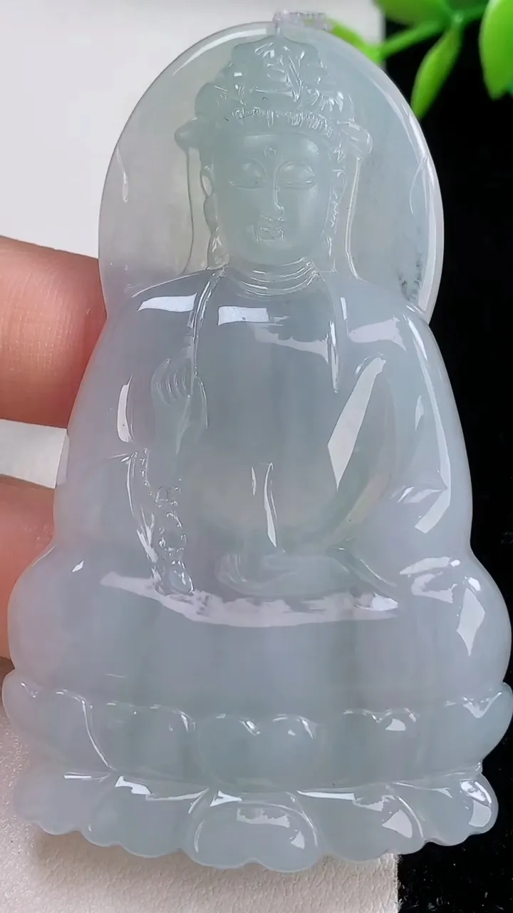 yn实拍58*39*4.8缅甸翡翠a货精雕冰双彩虚空藏菩萨玉吊坠 玉挂件