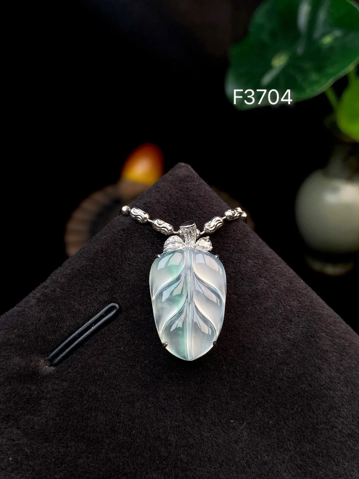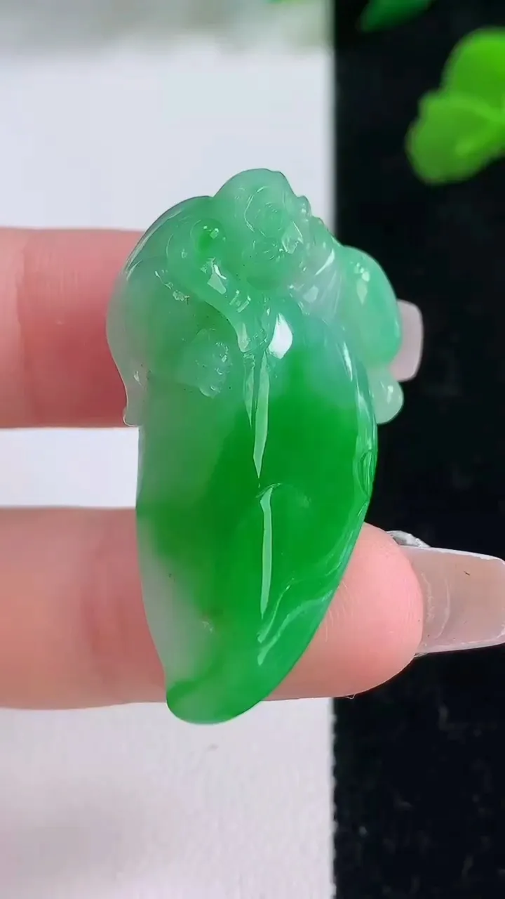 天然A货翡翠金枝玉叶 叶子吊坠,尺寸57.8-45.8-27.4-7.4,重量:11.28g 12月