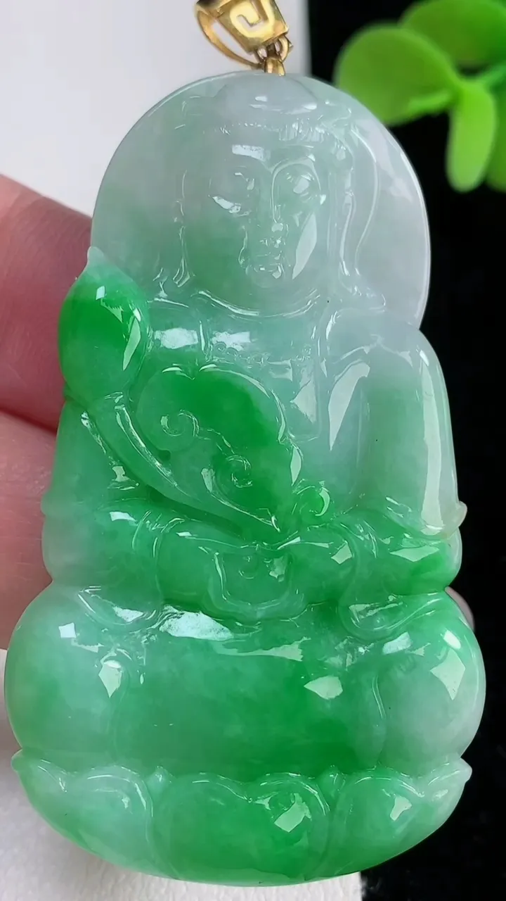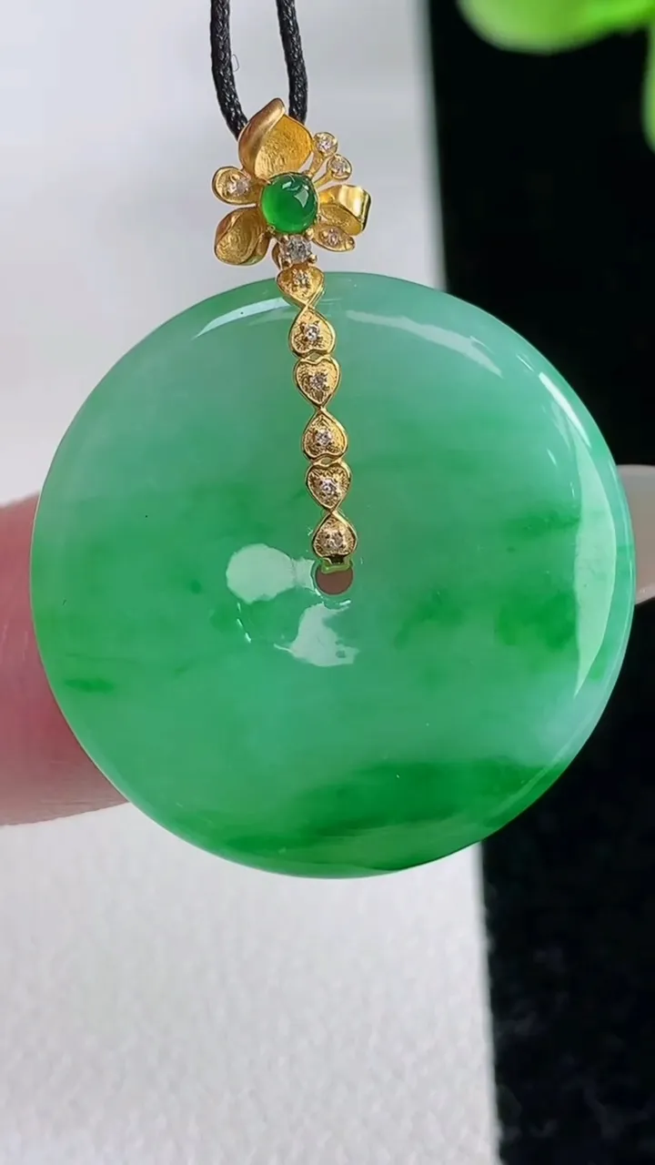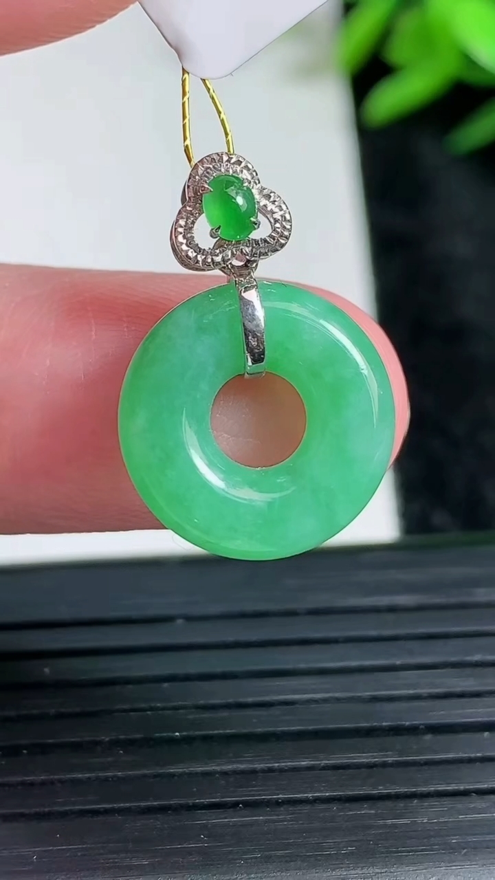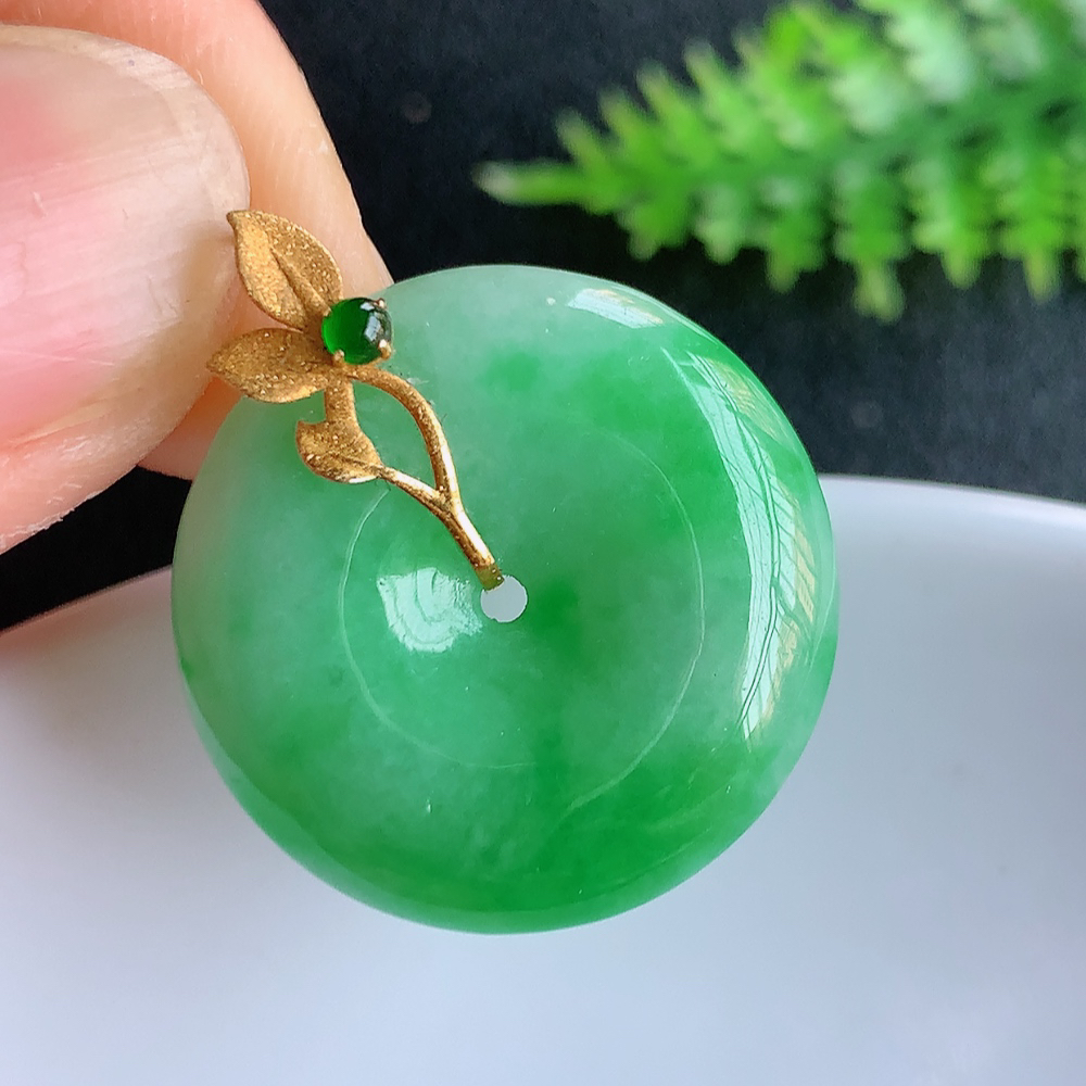 水润满绿平安扣吊坠,玉质细腻,做工精细,有种有色,佩戴效果更好