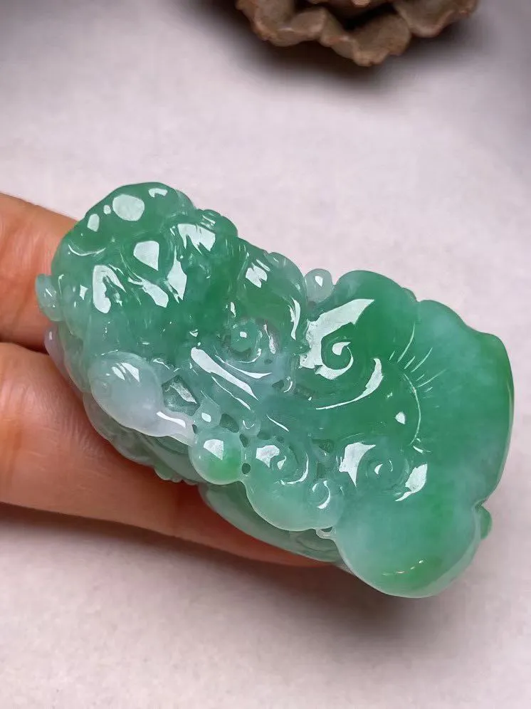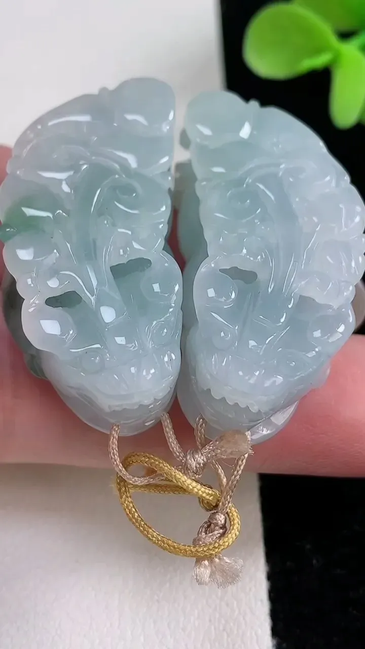 冰糯种飘绿貔貅吊坠、真金真钻镶嵌,种水好,玉质细腻 .裸石尺寸 52.0*30.8