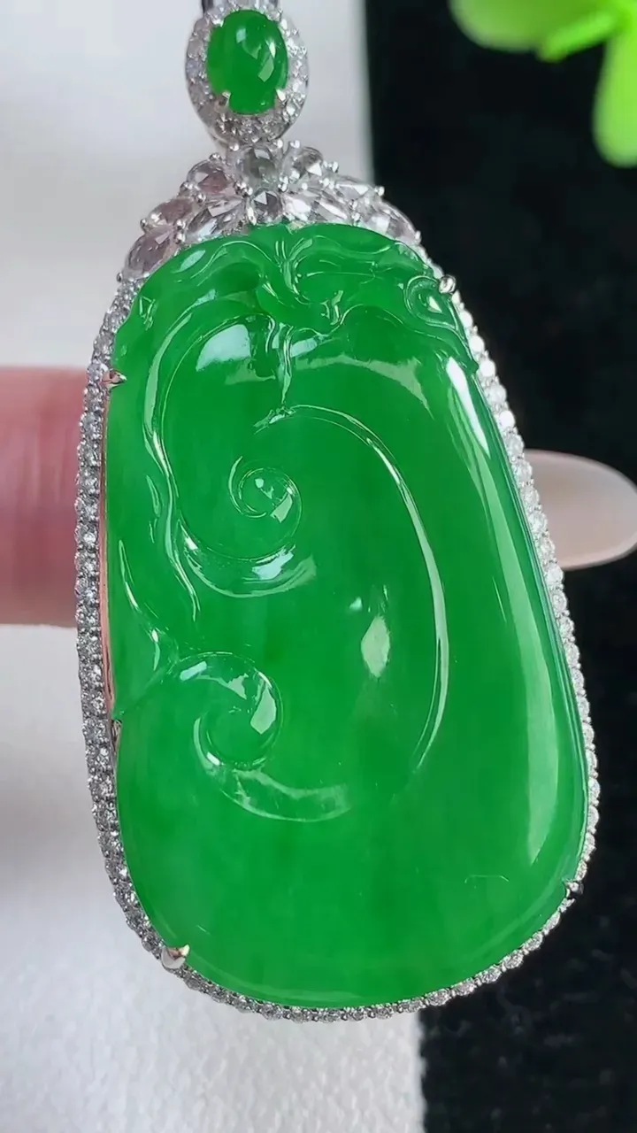 天然A货翡翠如意吊坠,尺寸50.3-24.7-10.2,裸石37-22.2重量:13.48g 12月