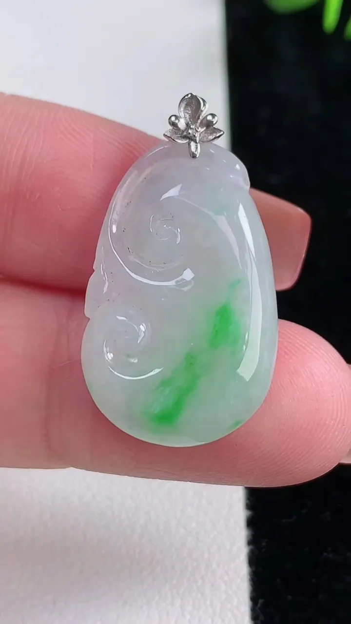 天然A货翡翠如意吊坠,尺寸26.8-16.8-4.2,重量:4.05g 12月15日