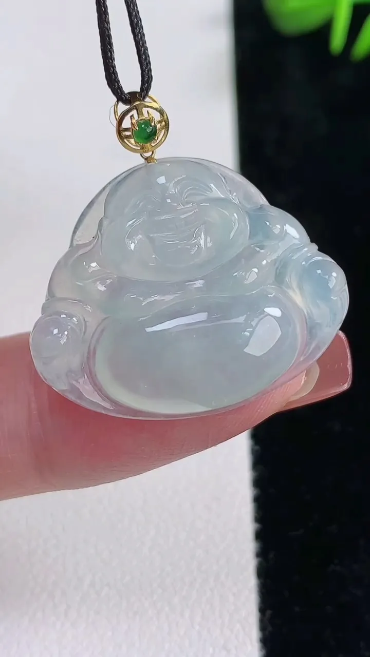 天然A货翡翠种白冰佛公吊坠,尺寸22-27.2-5,重量:4.74g 12月15日