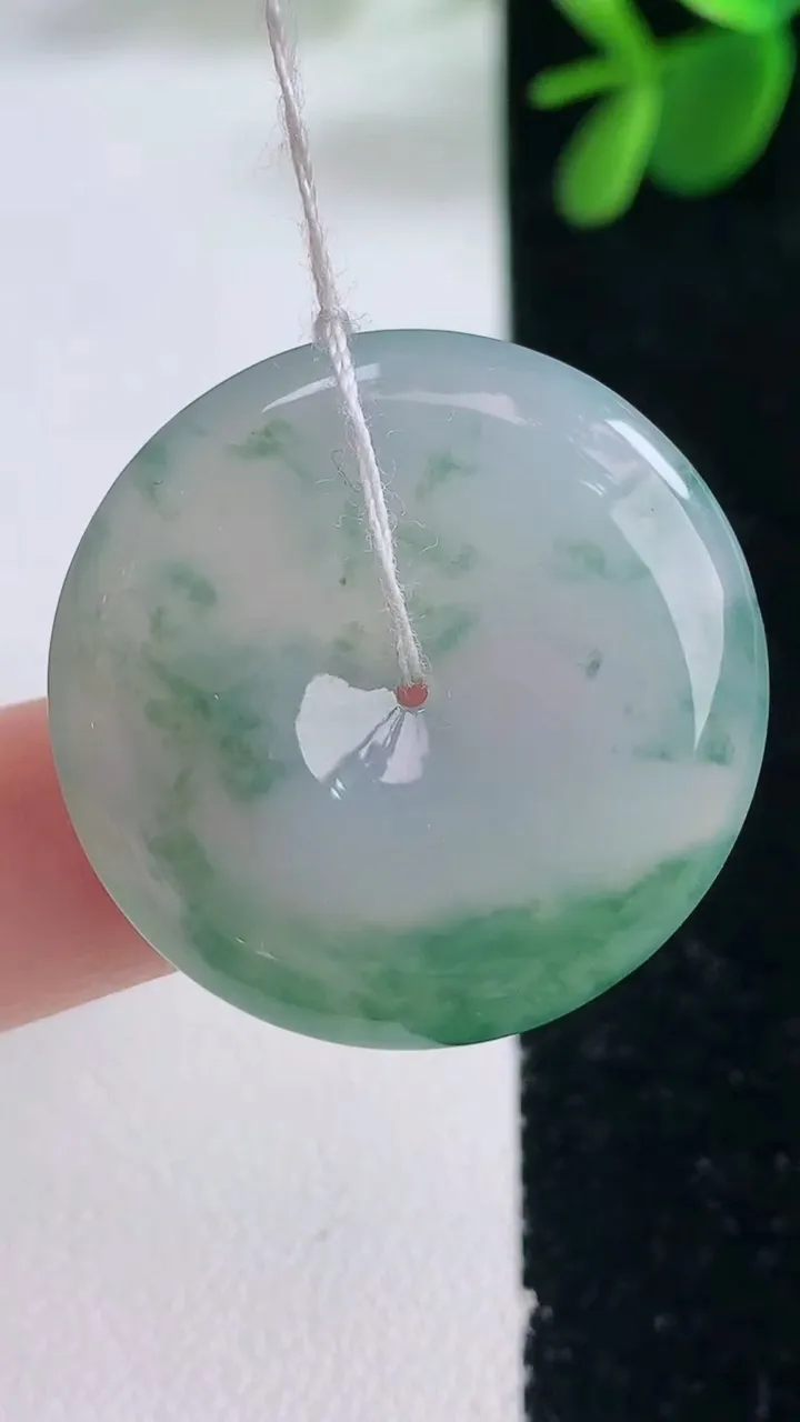 天然A货翡翠冰种飘花平安扣吊坠,尺寸29.3-5.5,重量:10.17g 12月26日