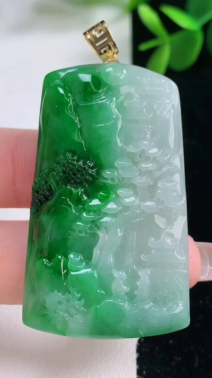天然A货翡翠山水牌吊坠,尺寸48.9-29.5-5,重量:18.77g 12月26日