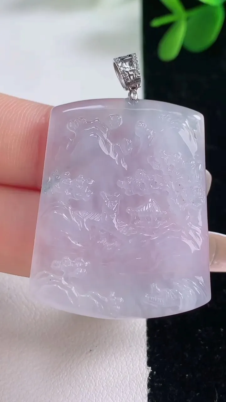 天然A货翡翠种紫罗兰山水牌吊坠,尺寸37.2-30-4,重量:11.71g 12月26日