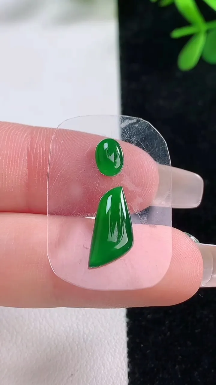 天然A货翡翠随形镶嵌件一对,尺寸14.5-7.4-2.3,重量:0.67g 12月27日