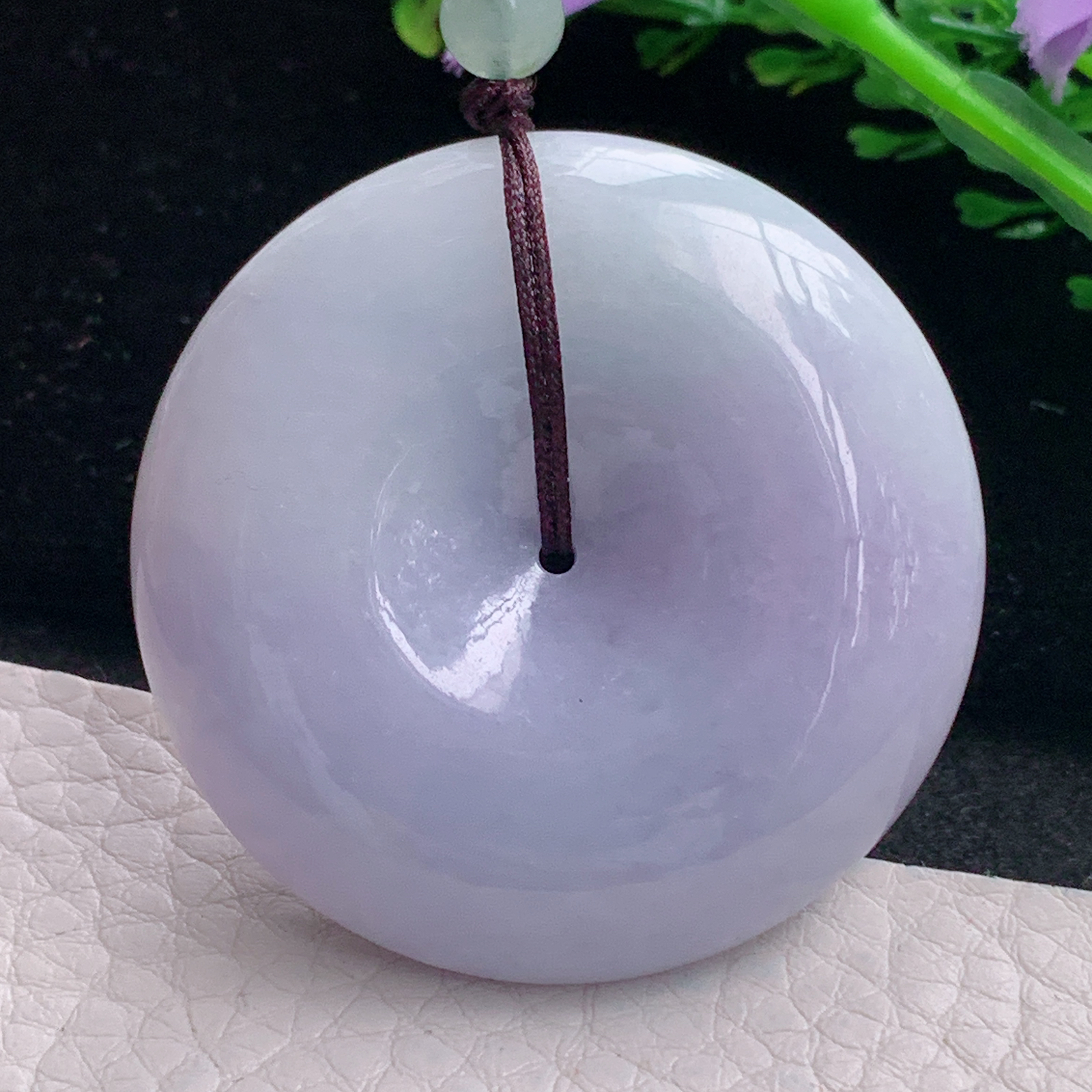 zen自然光44.7*12.3天然缅甸翡翠紫罗兰饱满平安扣 玉扣玉吊坠 玉挂件