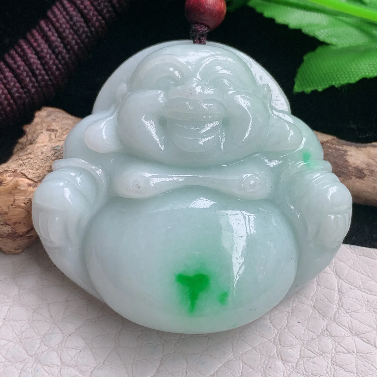 zen自然光46.2*49*12.6天然缅甸翡翠春带彩大佛公 开心佛玉吊坠 玉挂件