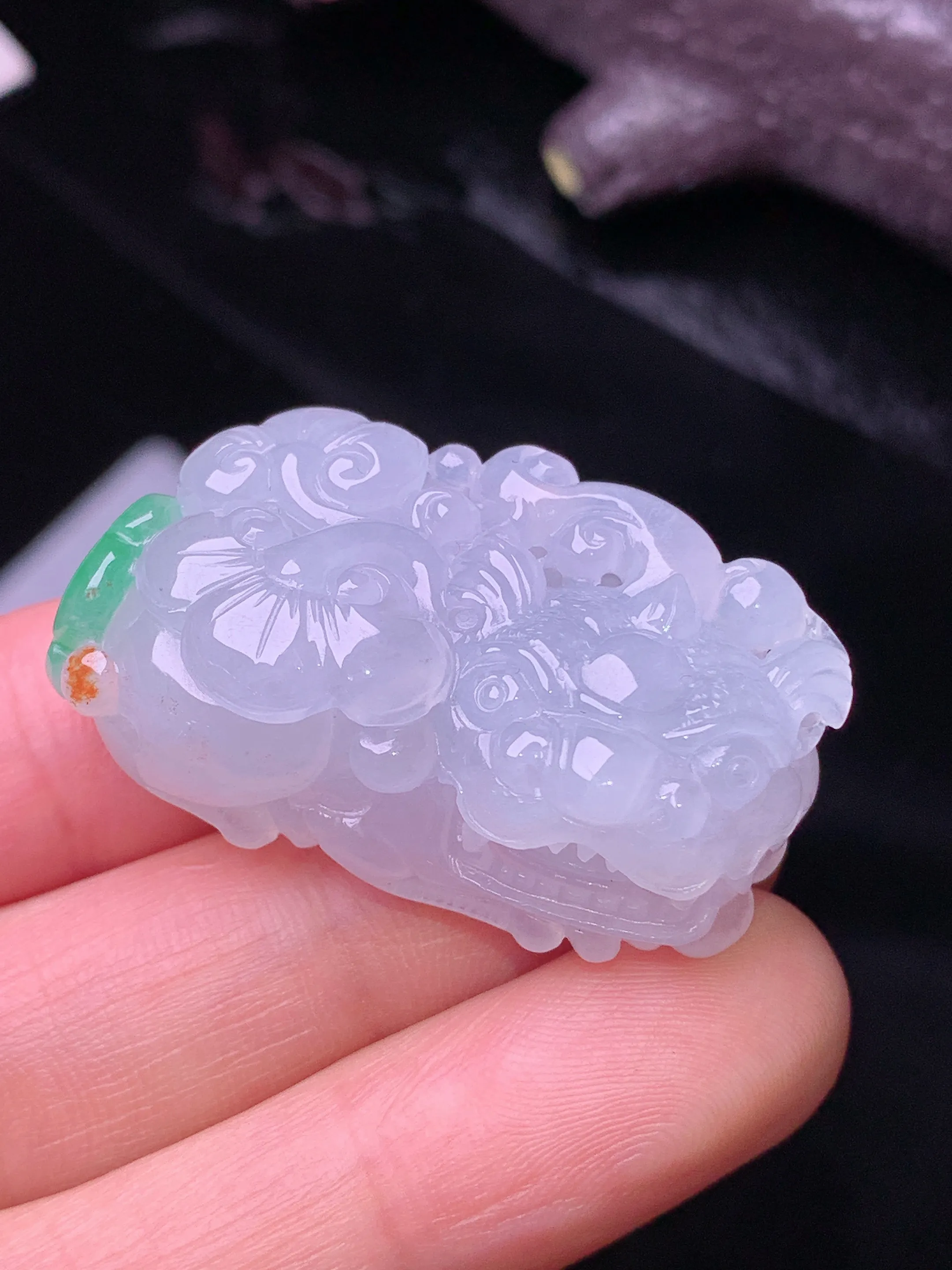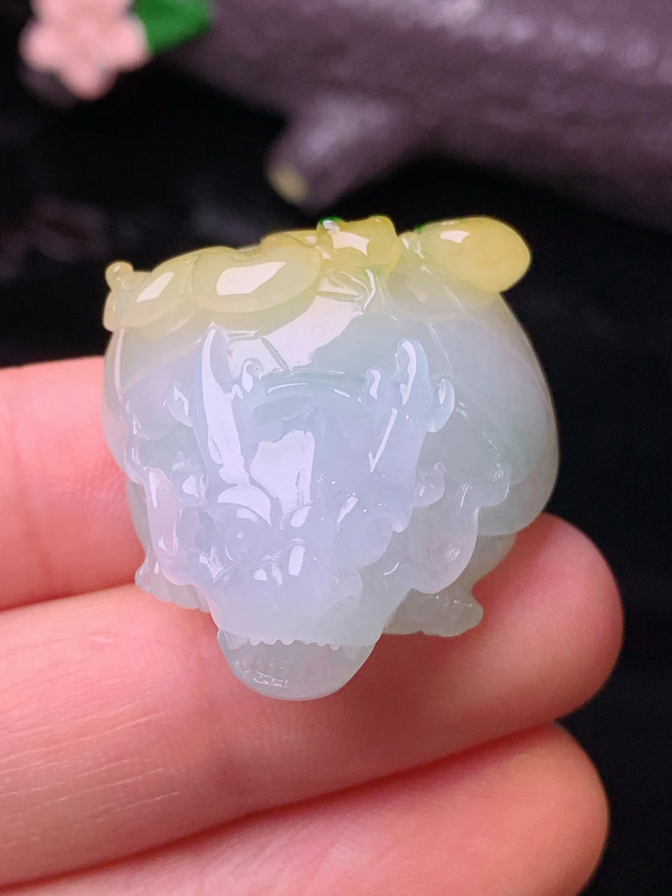 飘绿貔貅吊坠 玉质细腻 色泽清新艳丽 整体尺寸37*20.8*13.3