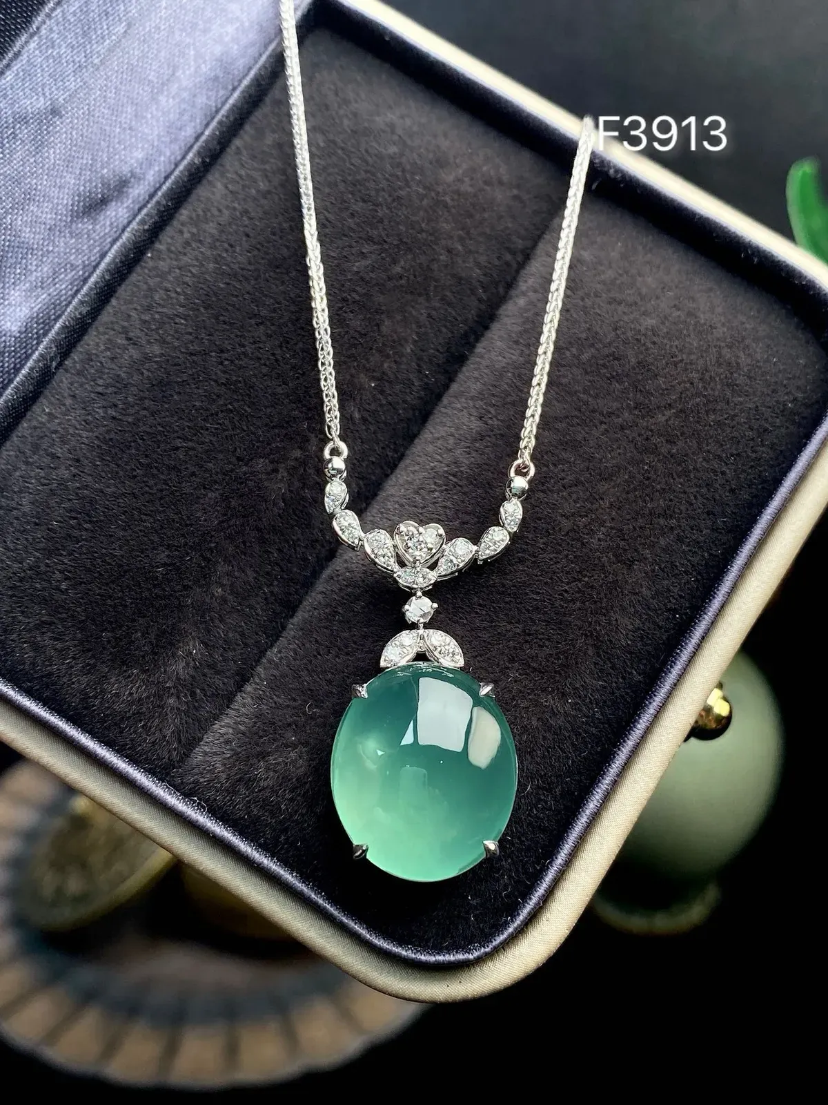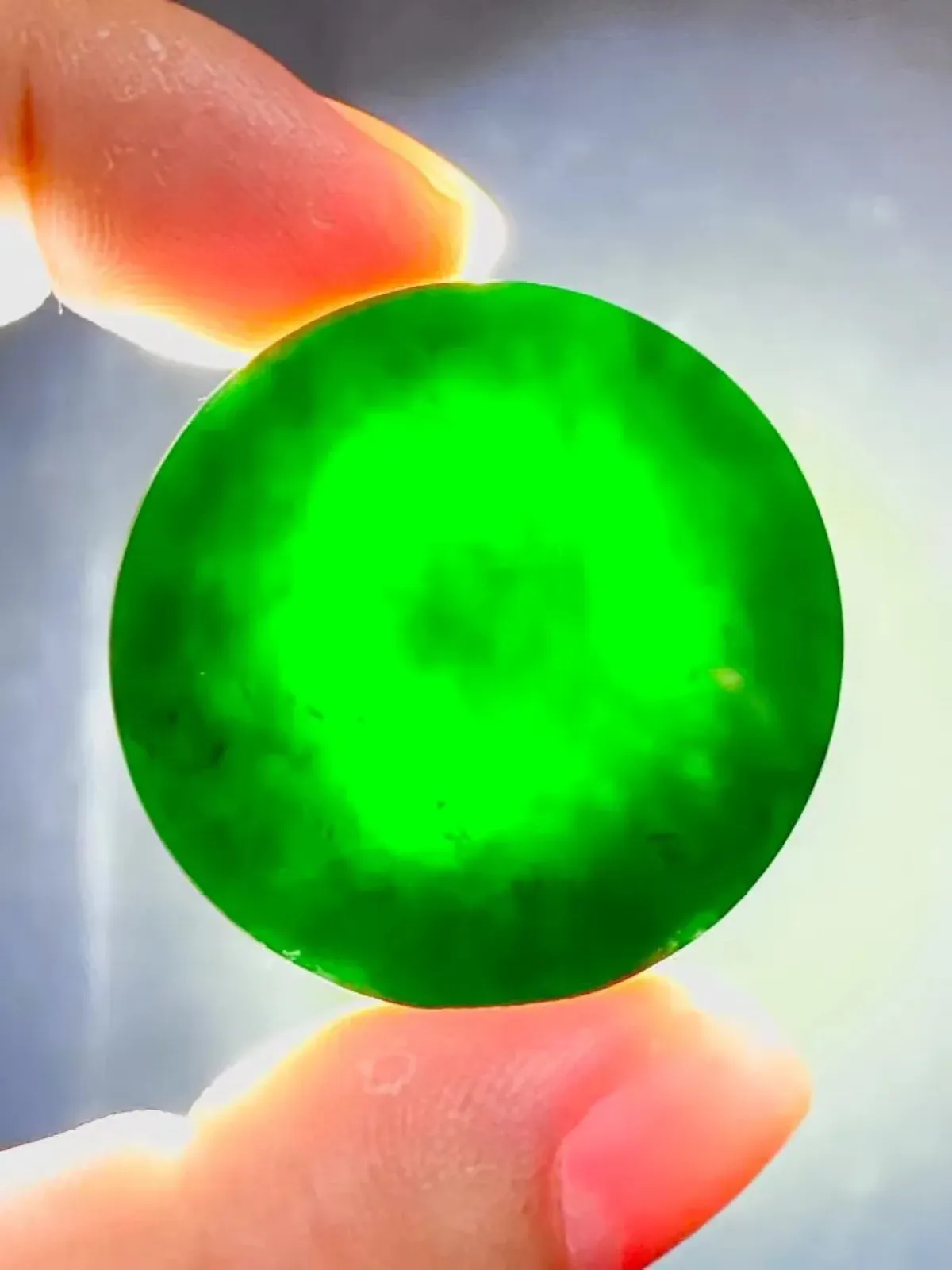 【冰种湖水绿蛋面吊坠】迷人湖水绿,形状非常饱满,冰润通透,种老起光,胶感强烈。质地细腻度均匀度很高,