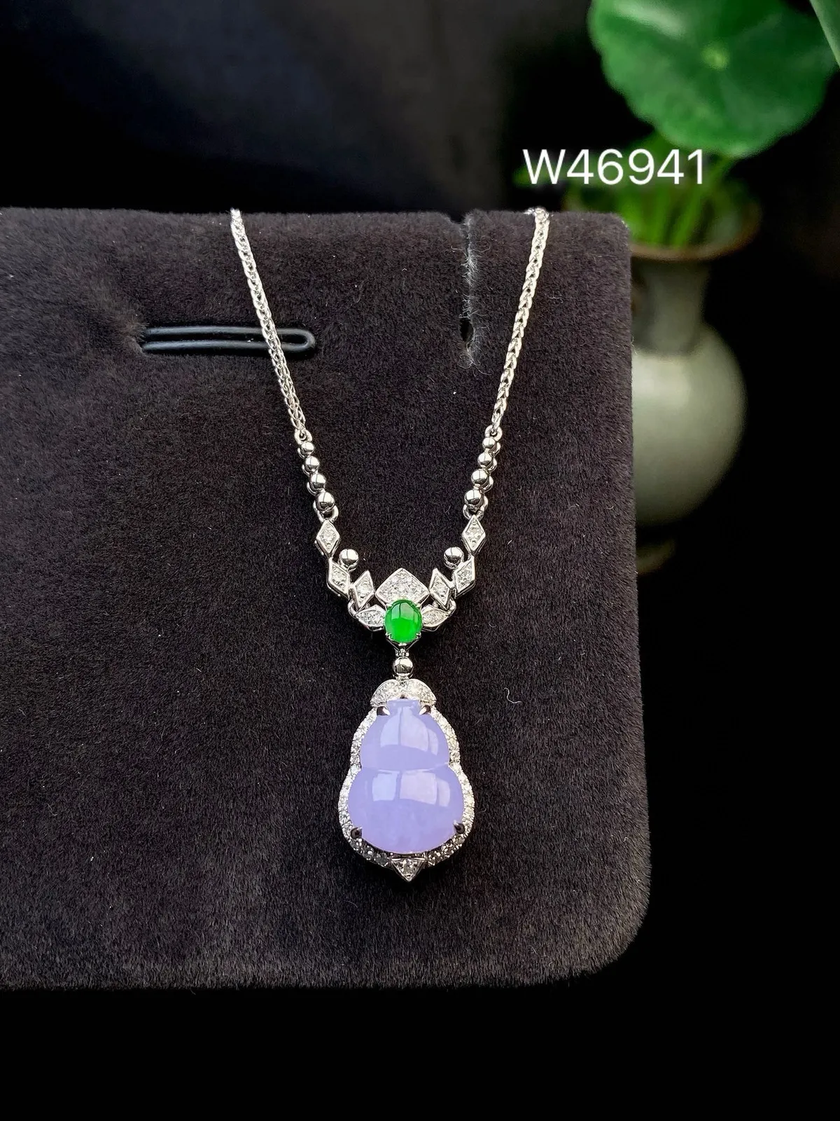 【冰种紫葫芦吊坠】质地细腻,冰透纯净,唯美漂亮,珍藏品质,18K金钻镶嵌,裸石尺寸11*9.4*3.