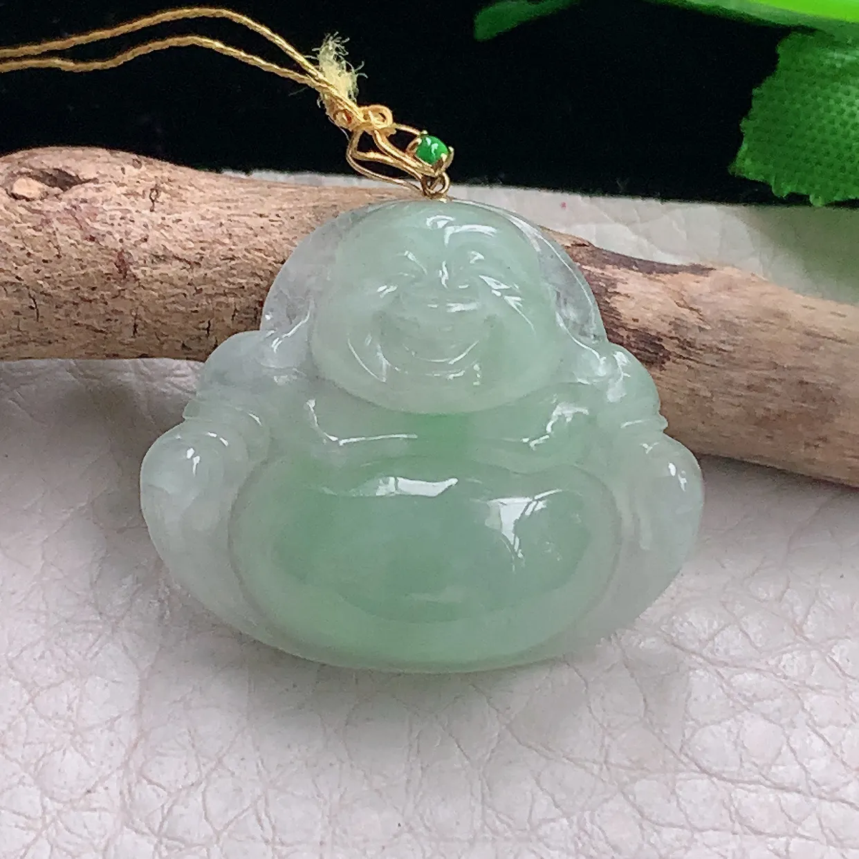 ws自然光26.3*29.5*6天然缅甸翡翠冰甜绿佛公 开心佛玉吊坠 玉挂件