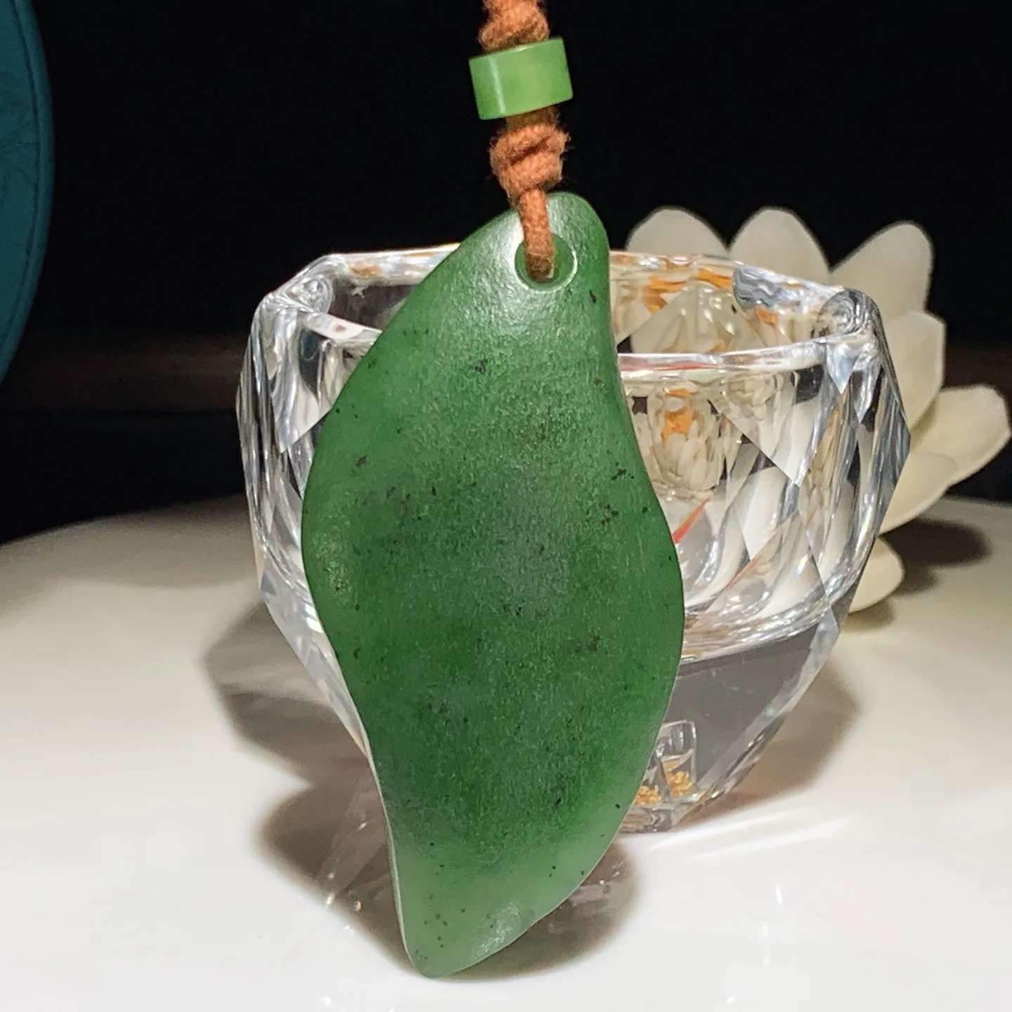 和田玉阳绿绿红皮料俄罗斯碧玉平安无事随型挂件。尺寸66/31/13重40克,玉质细腻油润 底色纯净