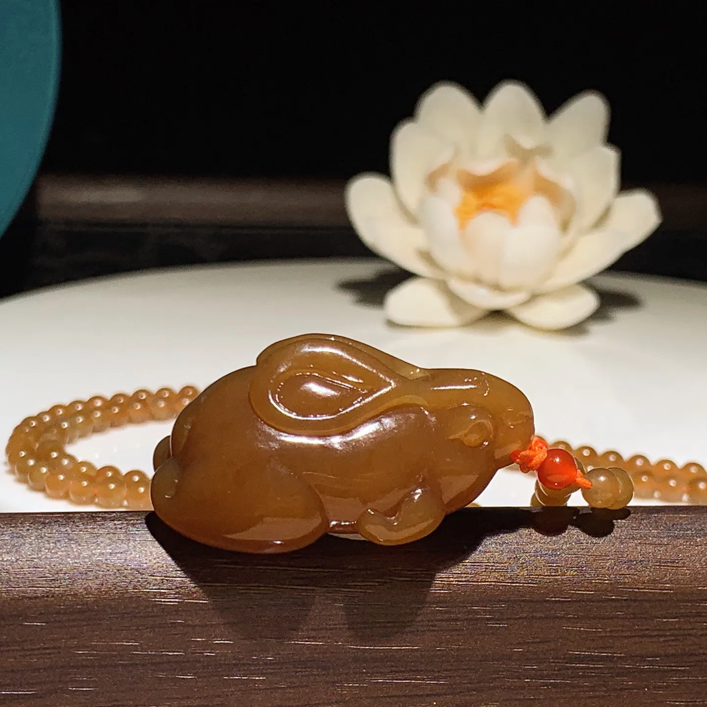新疆和田玉且末糖前途无量兔子挂件。尺寸40/23/19重35克,玉质细腻油润 底色纯净 脂粉好,品质