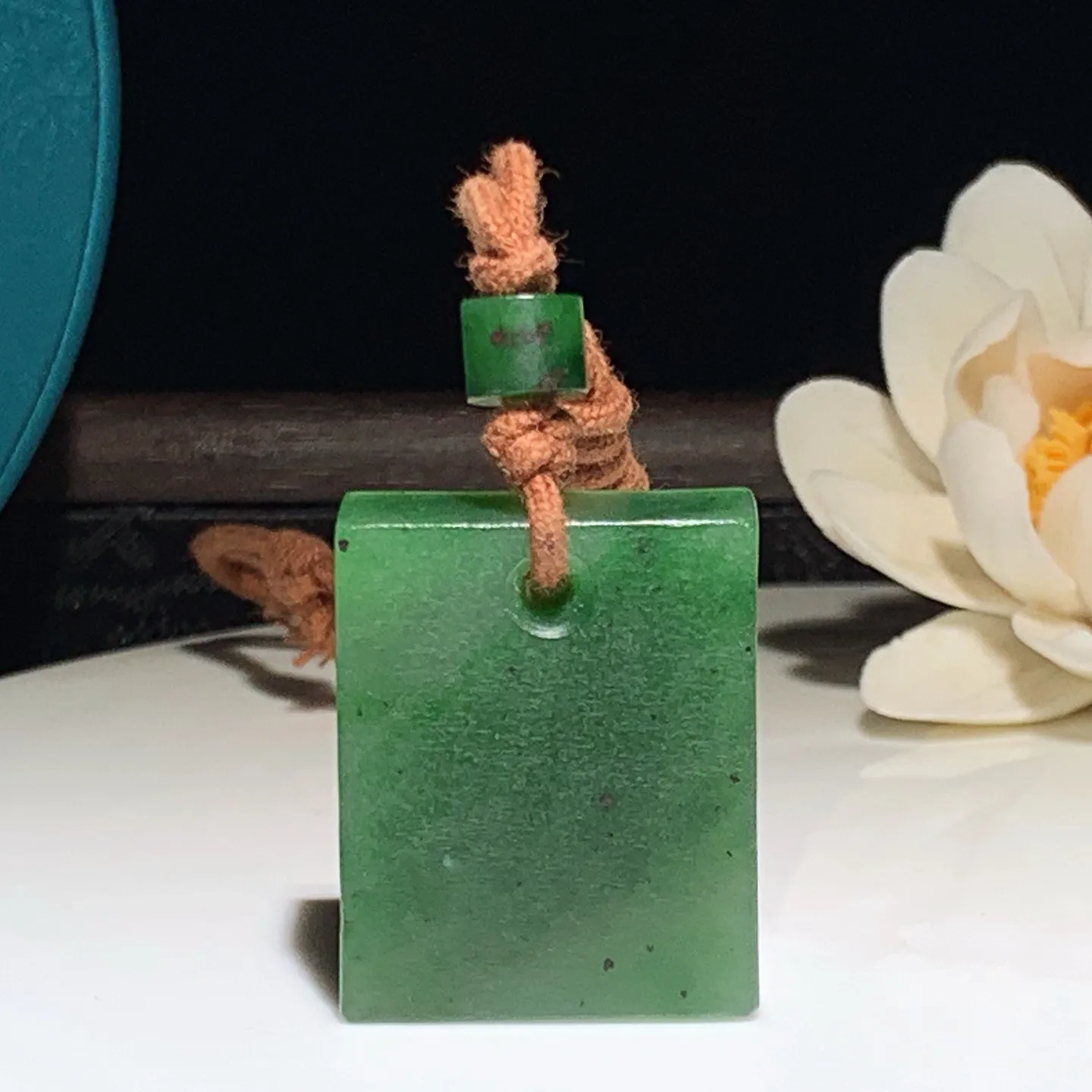 和田玉阳绿红皮料俄罗斯碧玉四方平安无事牌挂件。尺寸32/27/13重32克,玉质细腻油润 底色纯净