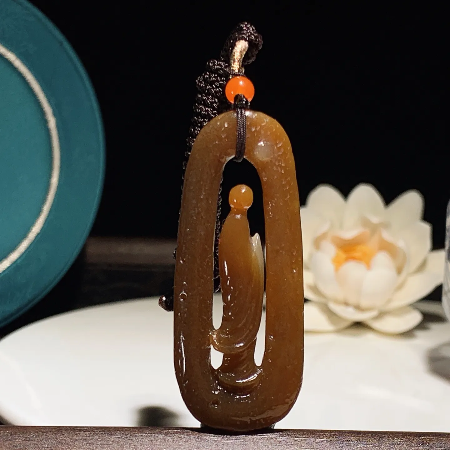 新疆和田玉且末糖悟道挂件。尺寸54/22/6重11克,玉质细腻油润 底色纯净 脂粉好,品质好!lt2