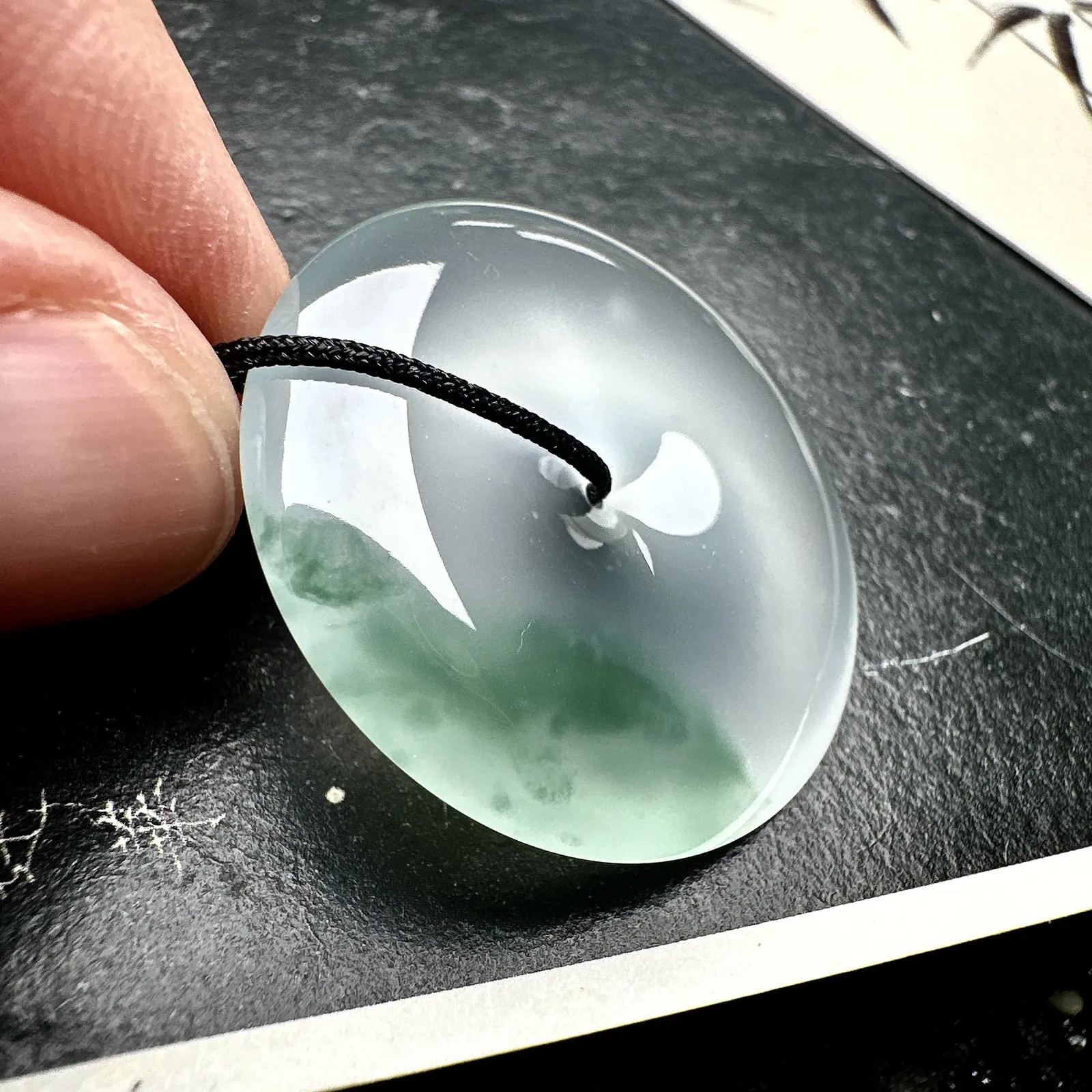 【冰种飘绿线平安扣】质地细腻,品质很好,冰感十足,胶感明显,收藏品质。